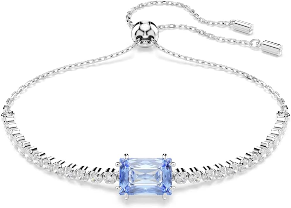 Swarovski Pulsera Matrix Tennis azul, baño de rodio 💍