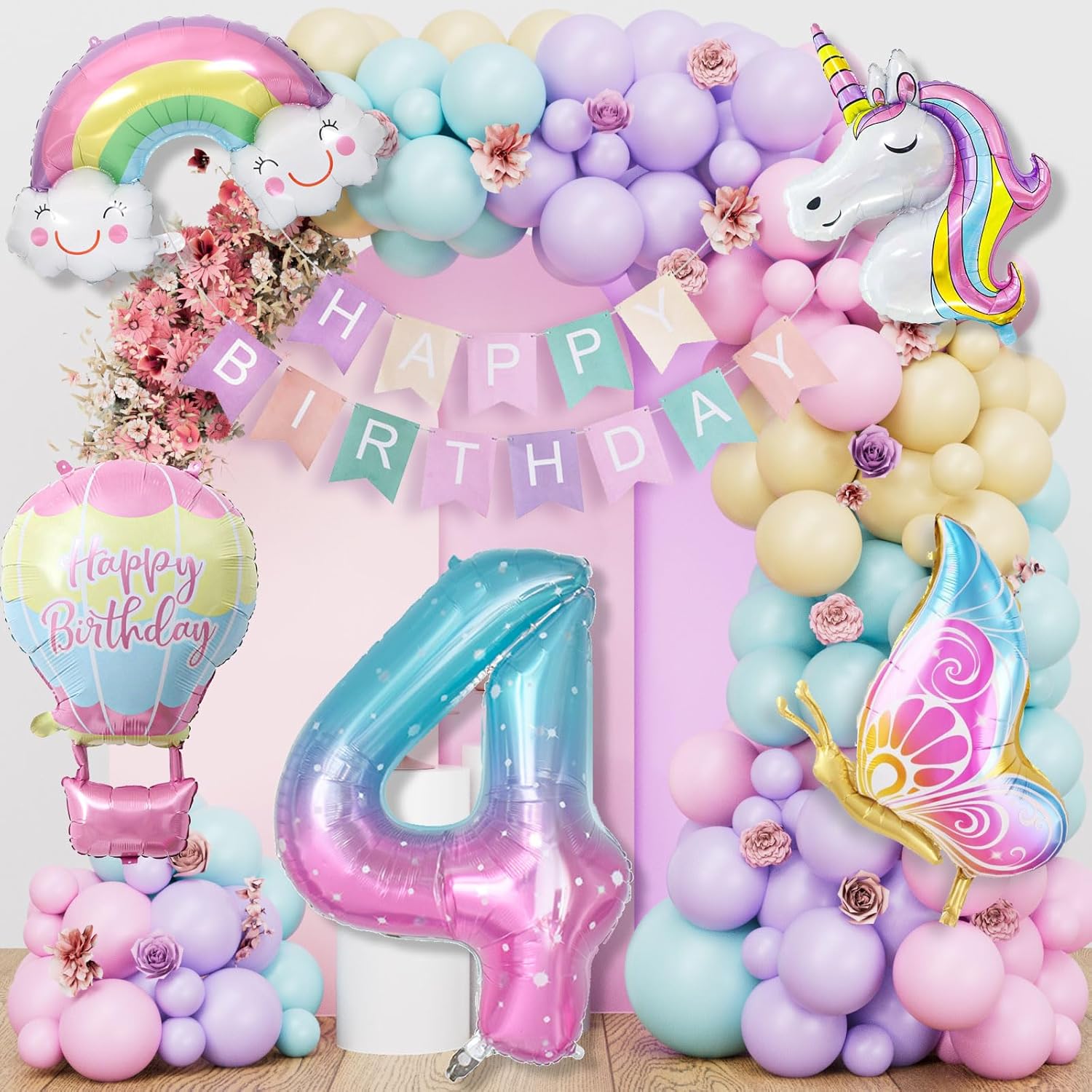 YEJIKJ Unicorn Balloons 4th Birthday Banner 🎈