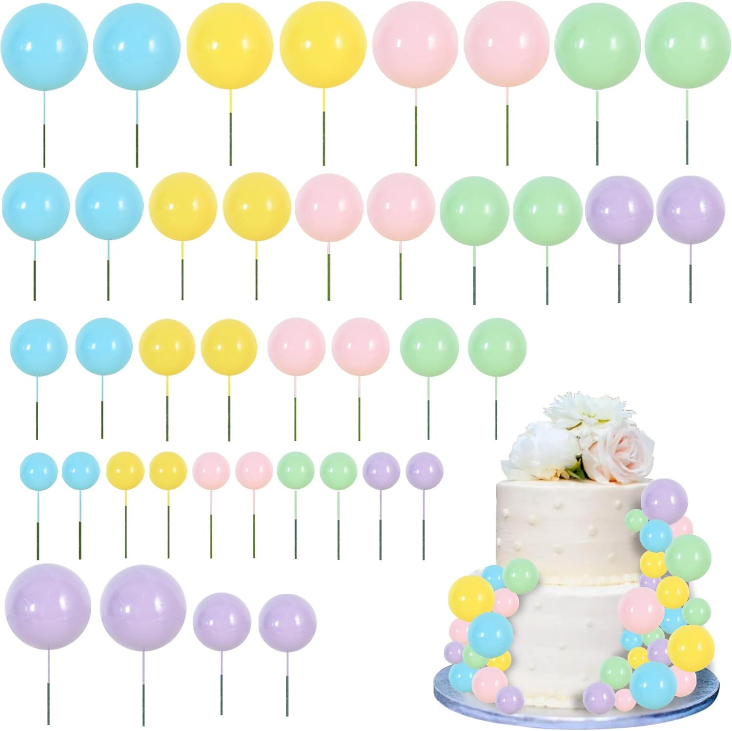 RIBBOOO 40 pcs pastel foam cake toppers 🍰