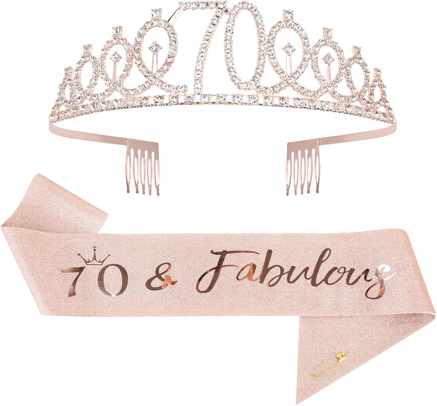 Mikccer Rose Gold 70th Birthday Sash and Tiara 🎉