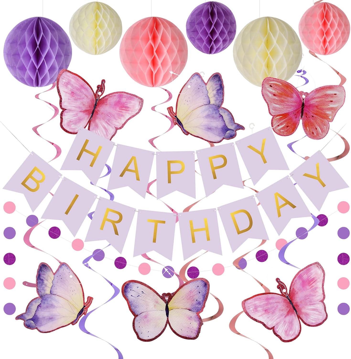 Purple Birthday Decoration banner with garland 🎉
