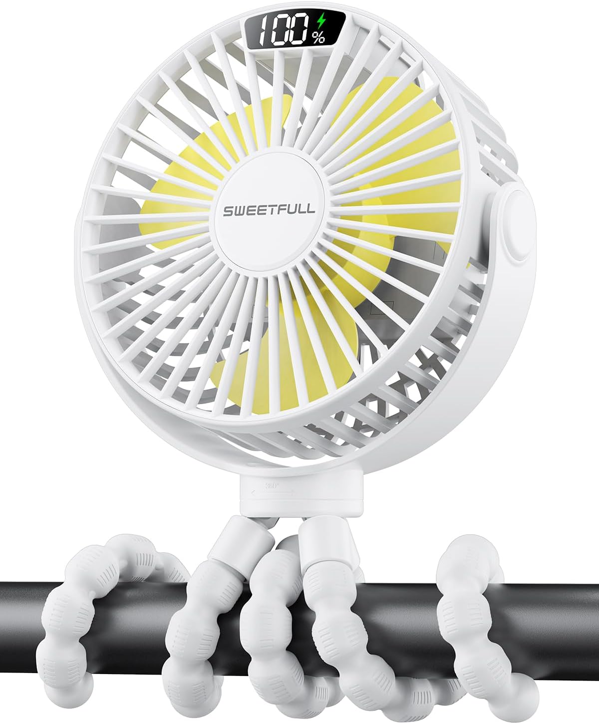 SWEETFULL Portable Pram Fan with LED display and 4000mAh rechargeable battery (White)