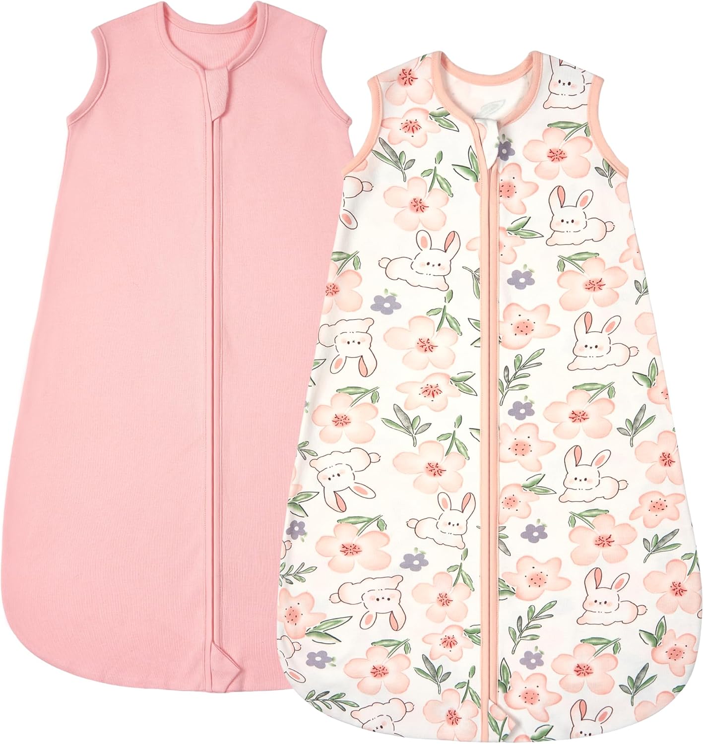 ZIGJOY Baby Sleeping Bag 0.5 Tog (100% Cotton) Summer Newborn Sleep Sack, Pink & Bunny Flower