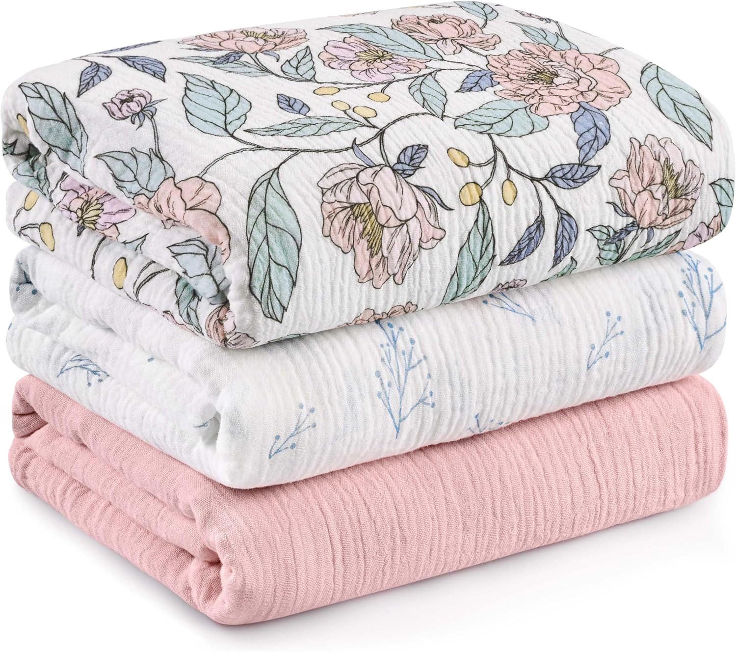 Soarwg Baby Muslin Swaddle Blankets Floral Fantasy Print (Set of 3, 95x100cm) – ...