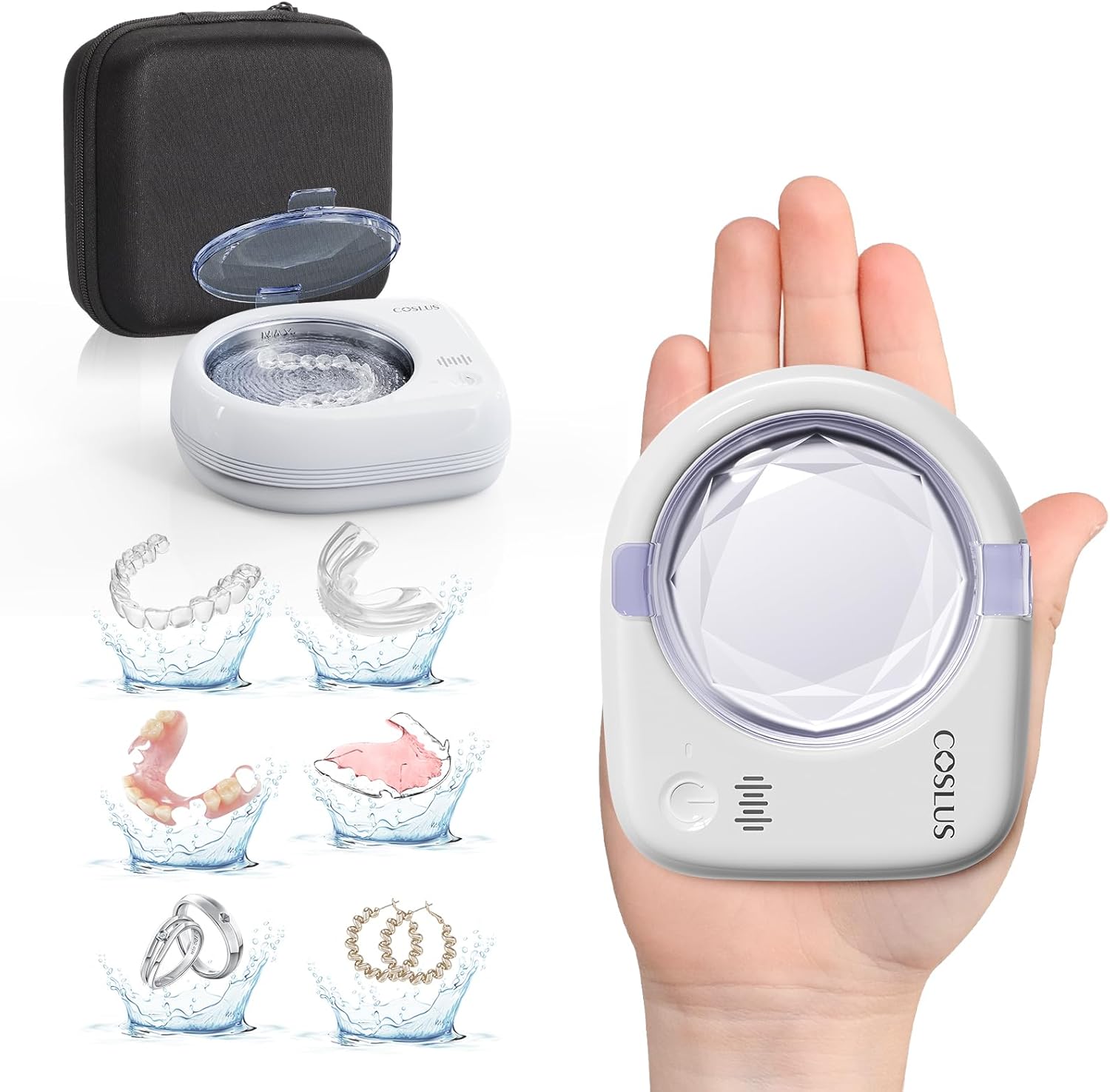 COSLUS C50 Portable Ultrasonic Retainer Cleaner (50kHz) with cordless wireless charging