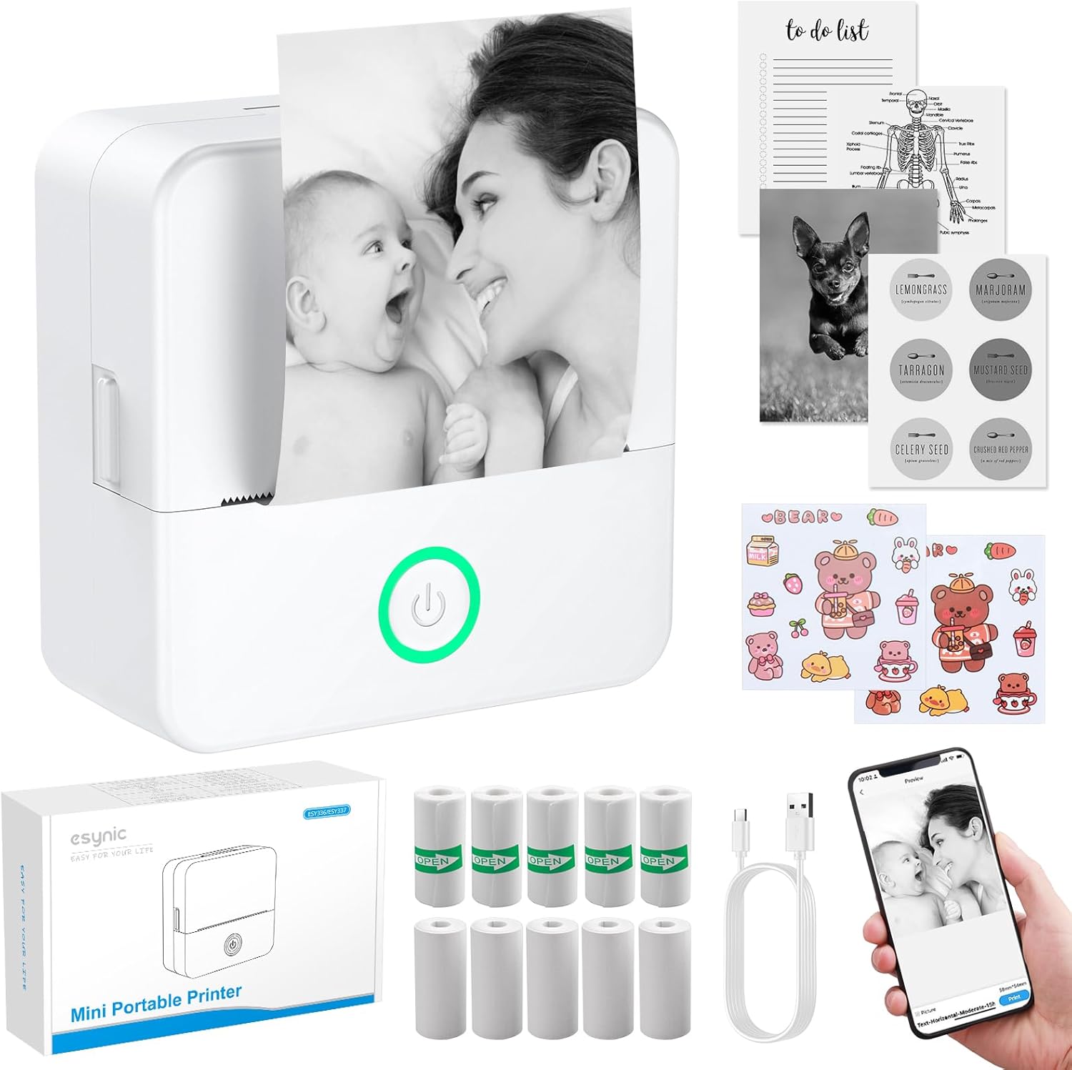 eSynic Mini Photo Printer Portable Pocket Thermal Printer with 10 Rolls & Storag...