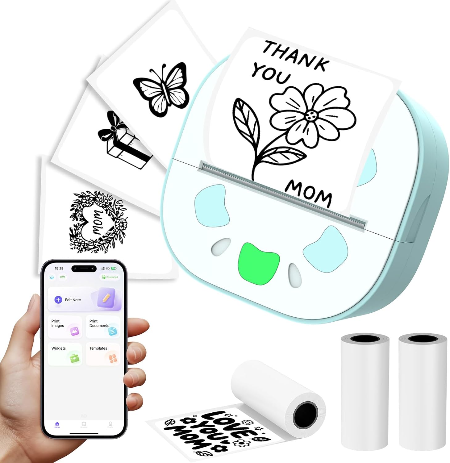 Zhwidnerso Mini Thermal Printer with 3 Rolls Paper – Bluetooth pocket sticker pr...