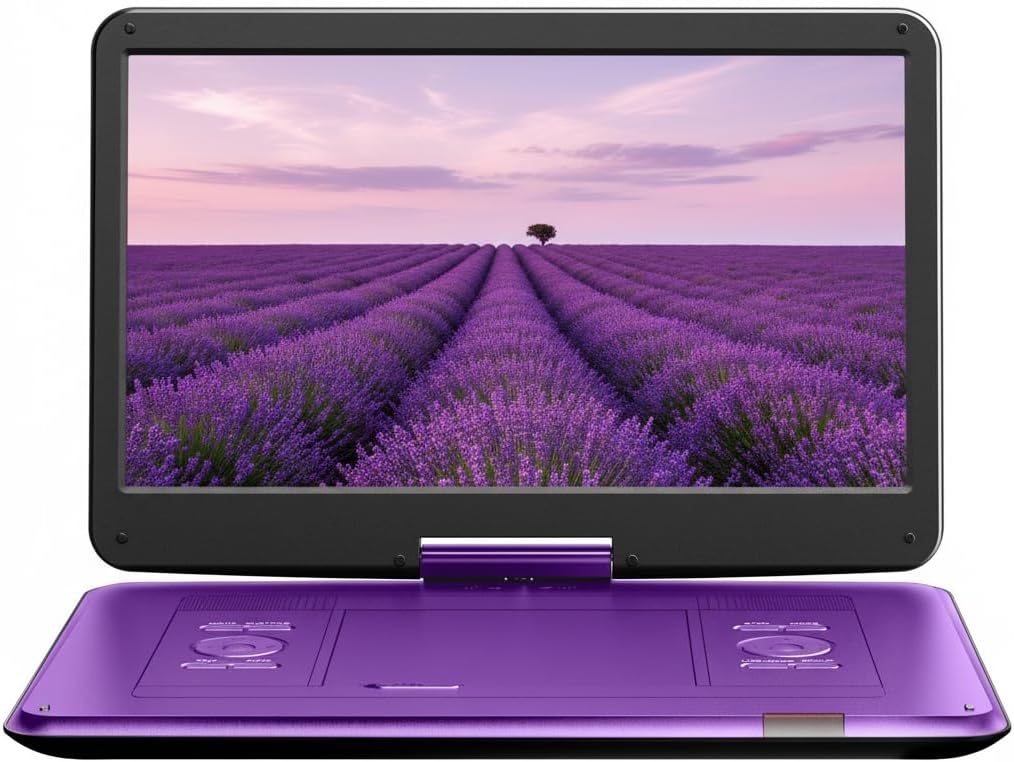 Yoton 17.5" Portable DVD Player with 15.6" HD Swivel Screen (Purple) – Rechargea...