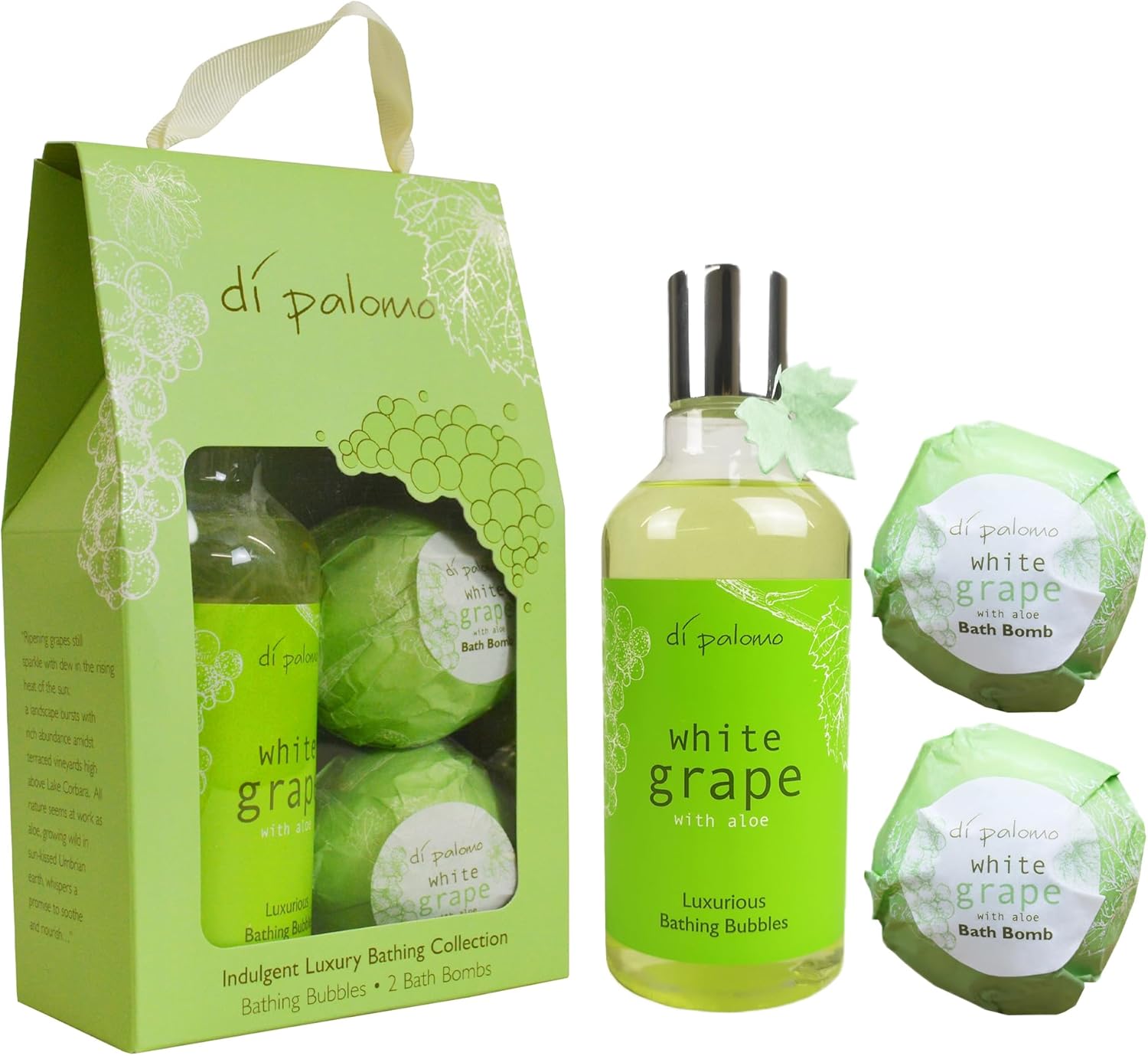 Di Palomo Vegan White Grape & Aloe Indulgent Luxury Bathing Collection (Bathing Bubbles 300ml + 2 Bath Bombs)