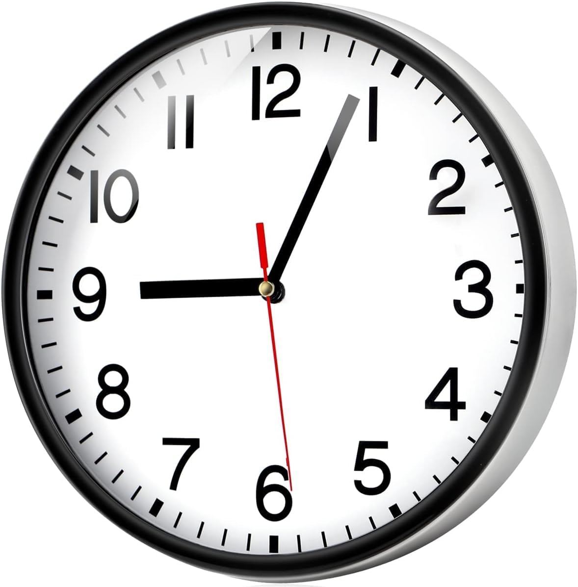 12 Inch Metal Frame Glass Cover Non-ticking Quartz Wall Clock (Silver) for quiet...