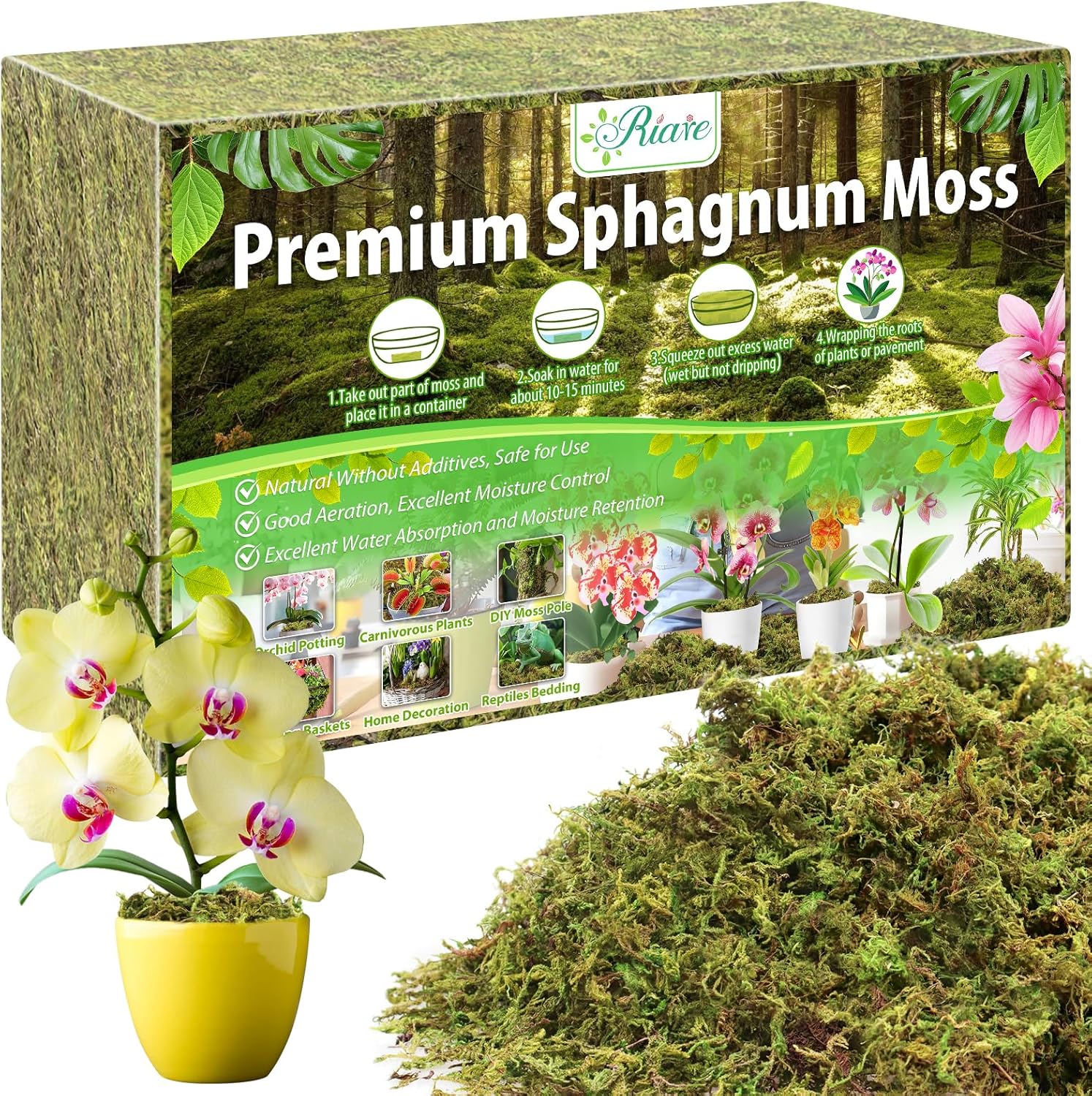 Riare 1.3kg Natural Dried Plant Moss (Sphagnum) for Repotting, Succulents, Aquariums & DIY