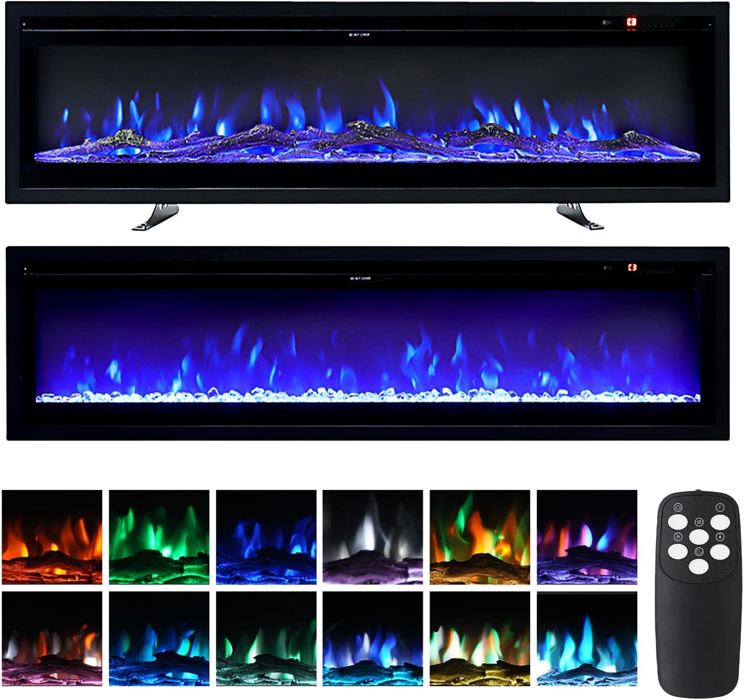INMOZATA Electric Fire Wall Mounted/Recessed/Freestanding 102cm Electric Fireplace with Remote & Touch Screen Control 12 LED Color Flame Effect, 2 Heat Settings 900W&1800W, Crystal & Log Set INMOZATA Electric Fire Wall Mounted/Recessed/Freest…