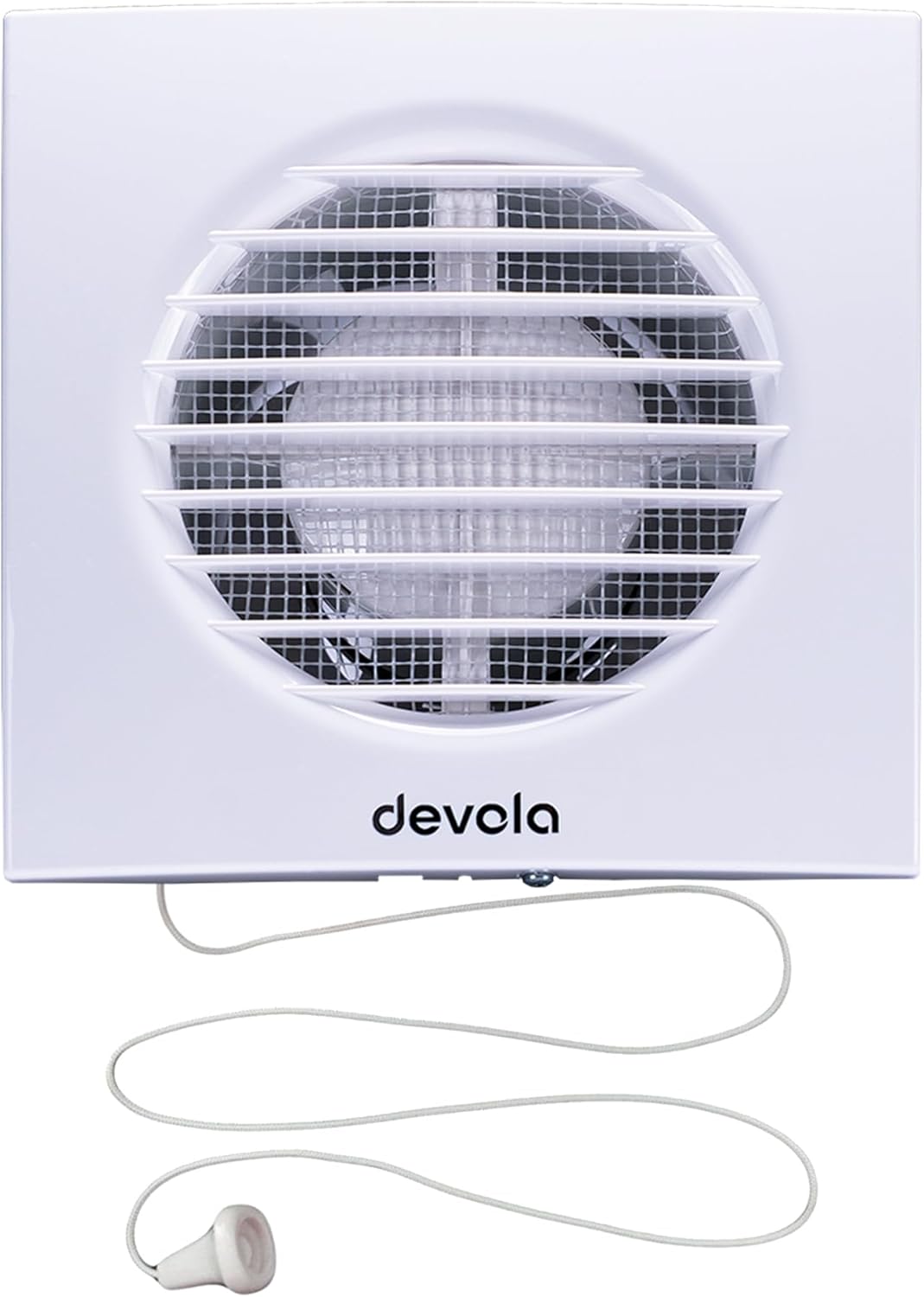 Devola DVF100P 100mm axial extractor fan with pull cord (4 inch) for bathrooms a...