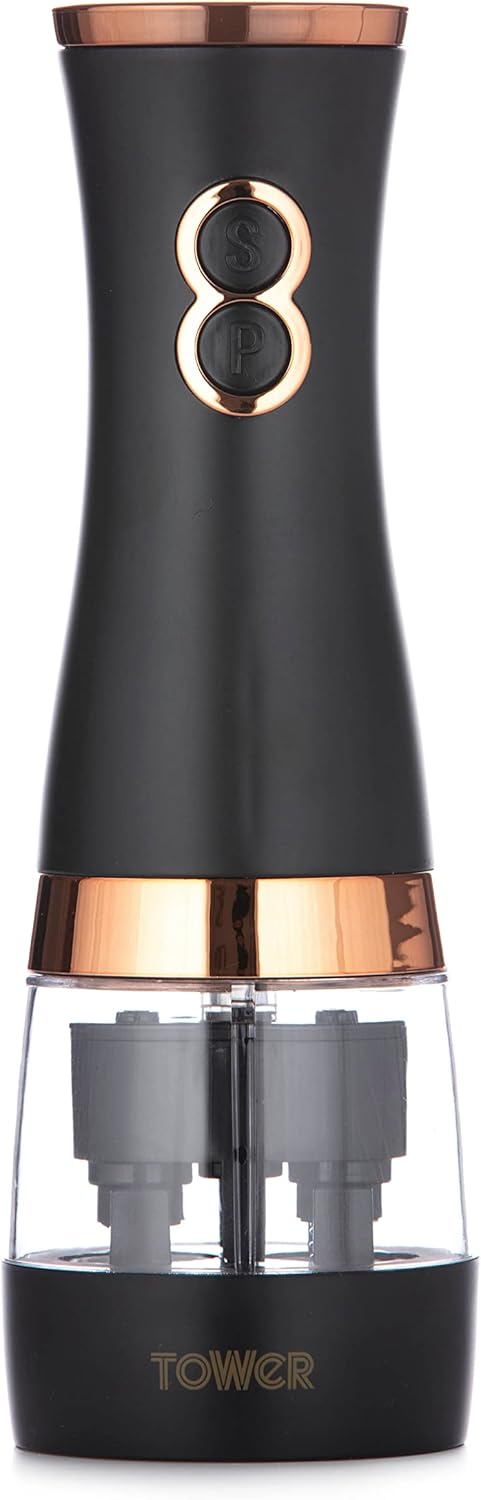 Black stainless steel electric salt and pepper grinder set with dust cover – rec...