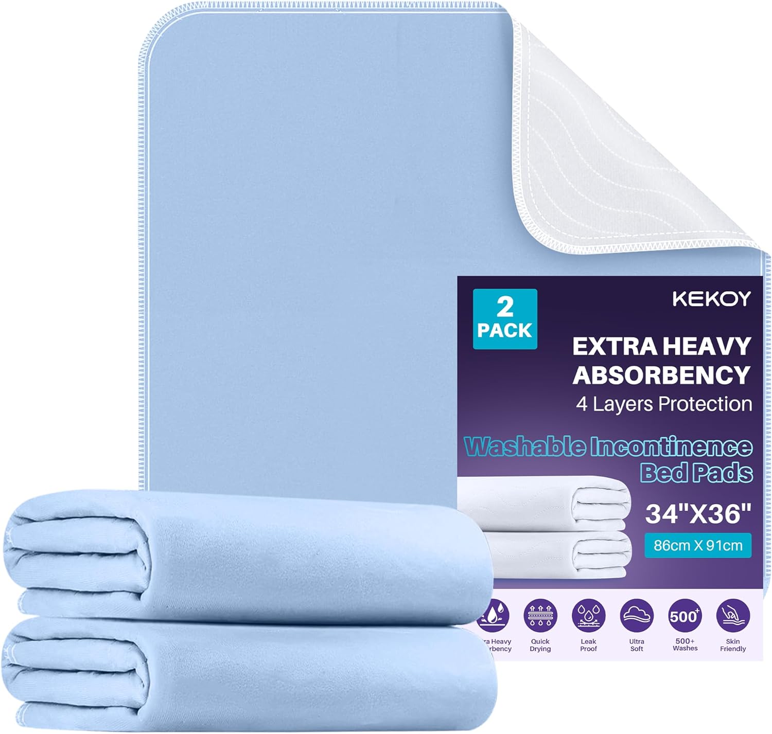 Kekoy Reusable Incontinence Bed Sheets 2-Pack (34 x 36 inch) waterproof washable pads