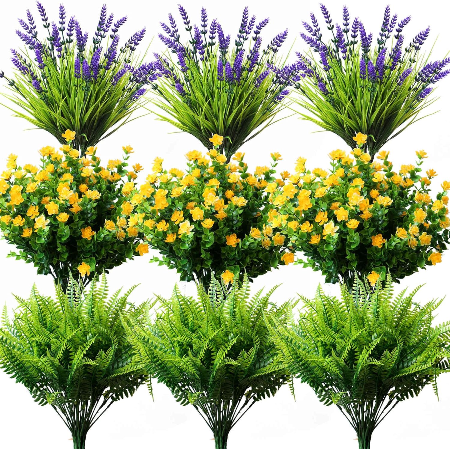 YXYQR 18PCS Artificial Spring Plants (Monk Grass, Ferns & Flowers) UV-Resistant ...