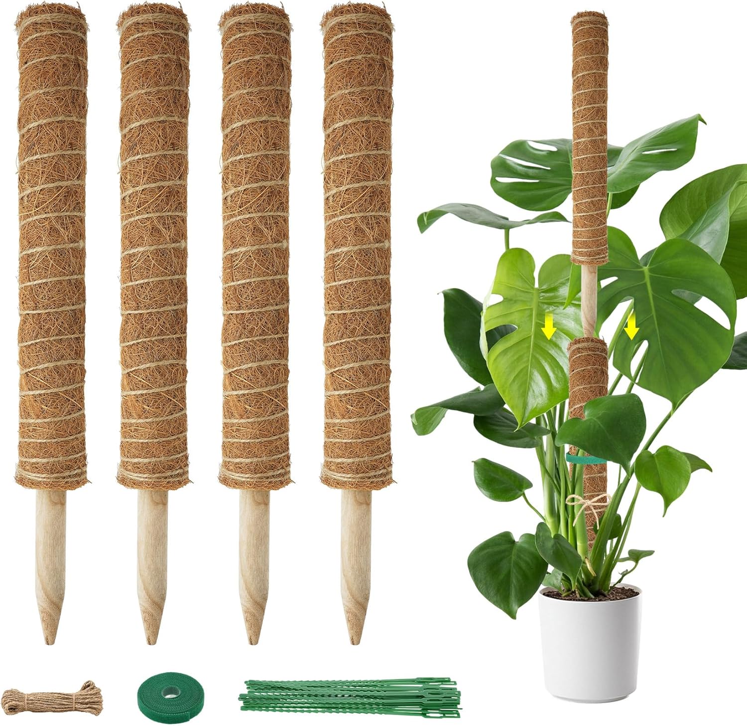 YAWAHOME Moss Pole for Monstera – 4 Pack Stackable Coco Coir Plant Supports (Ext...