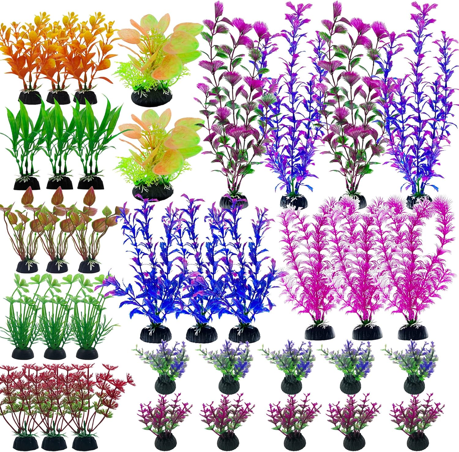 Cayway 37 PCS Aquarium Artificial Aquatic Plants (Mixed Plastic Plants) with Bases for Fish Tank Decoration