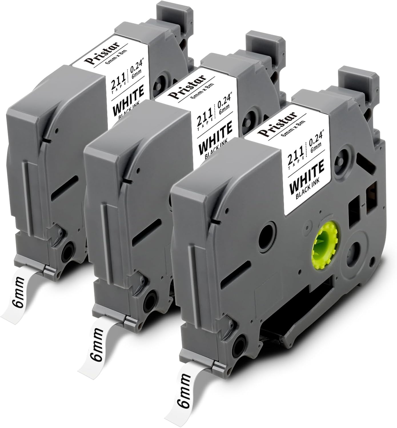 Pristar TZe-211 6mm label tape — black on white 🎫