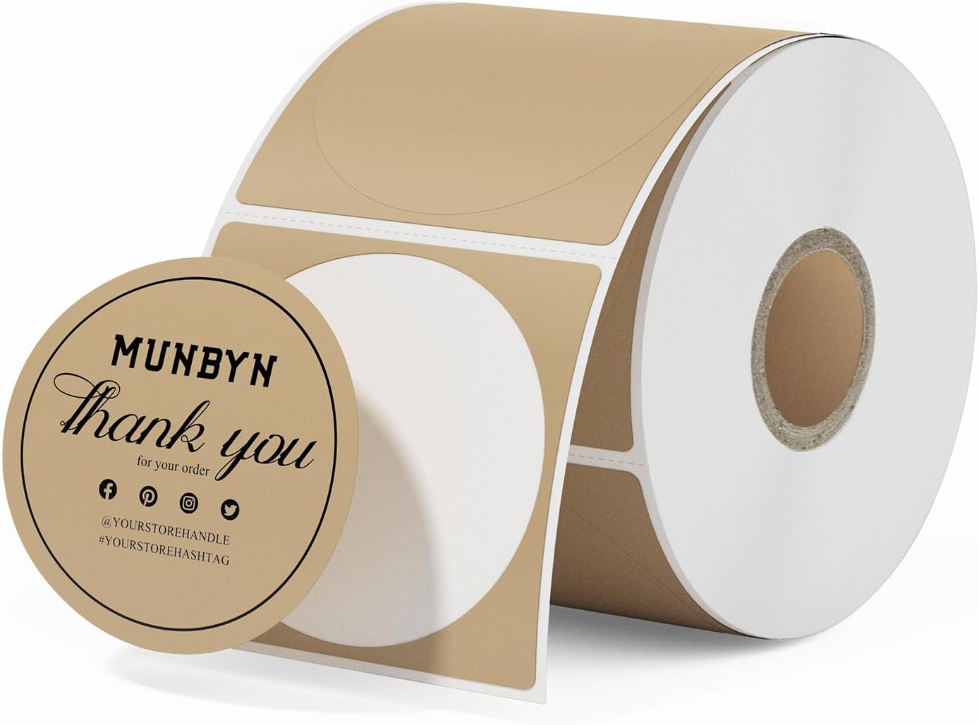 MUNBYN 50x50mm Kraft Circle Thermal Labels 750 📦