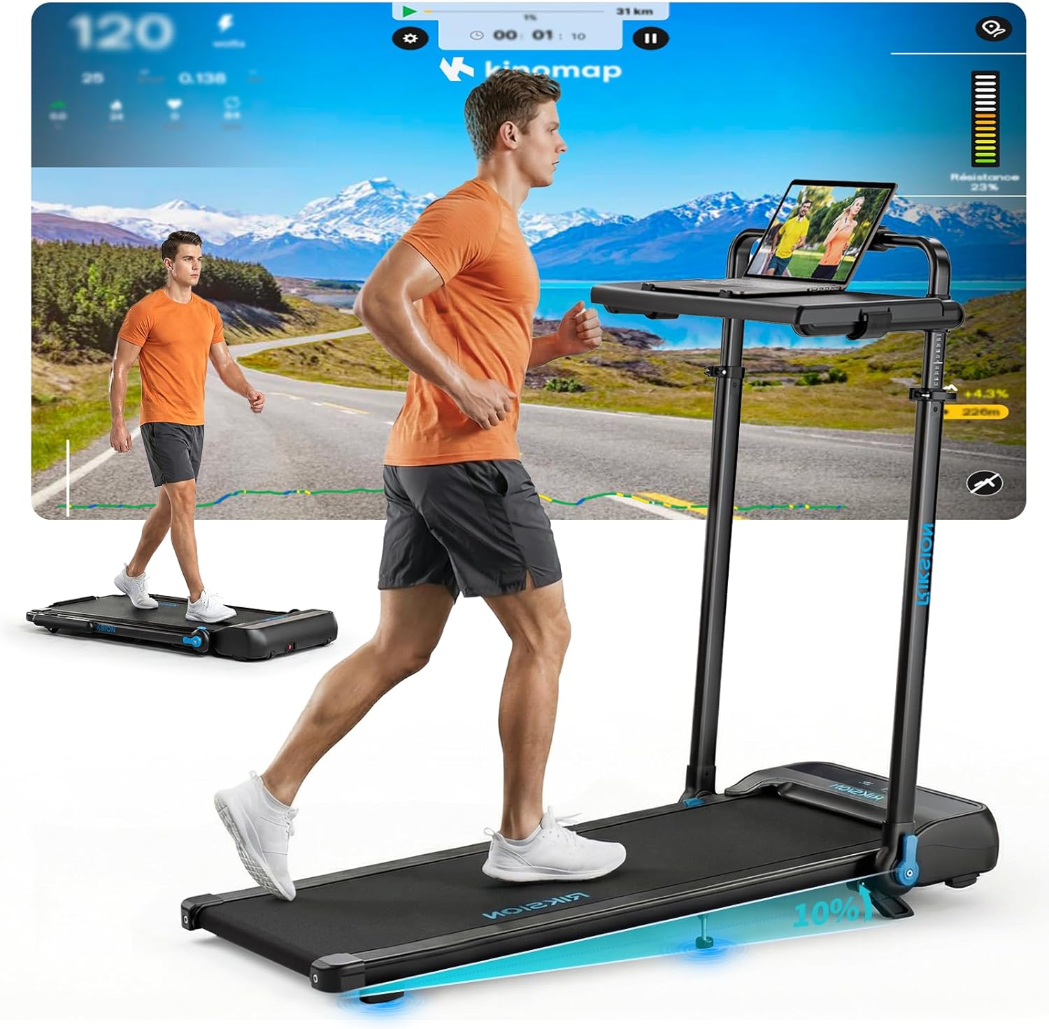 - Name: 3.0HP Treadmills with 10% Incline Adjustable Height 1-14KM/H Under desk Walking Pad with Foldable Handrail Removable Desk Running Machine for Home/Office Jogging App Support