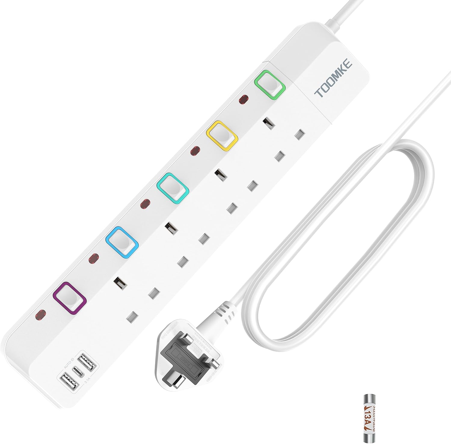 - Aodeng Tower Extension Lead with USB Slots, 5m 12-way outlets and 4 USB ports (1 Type C + 3 USB-A)