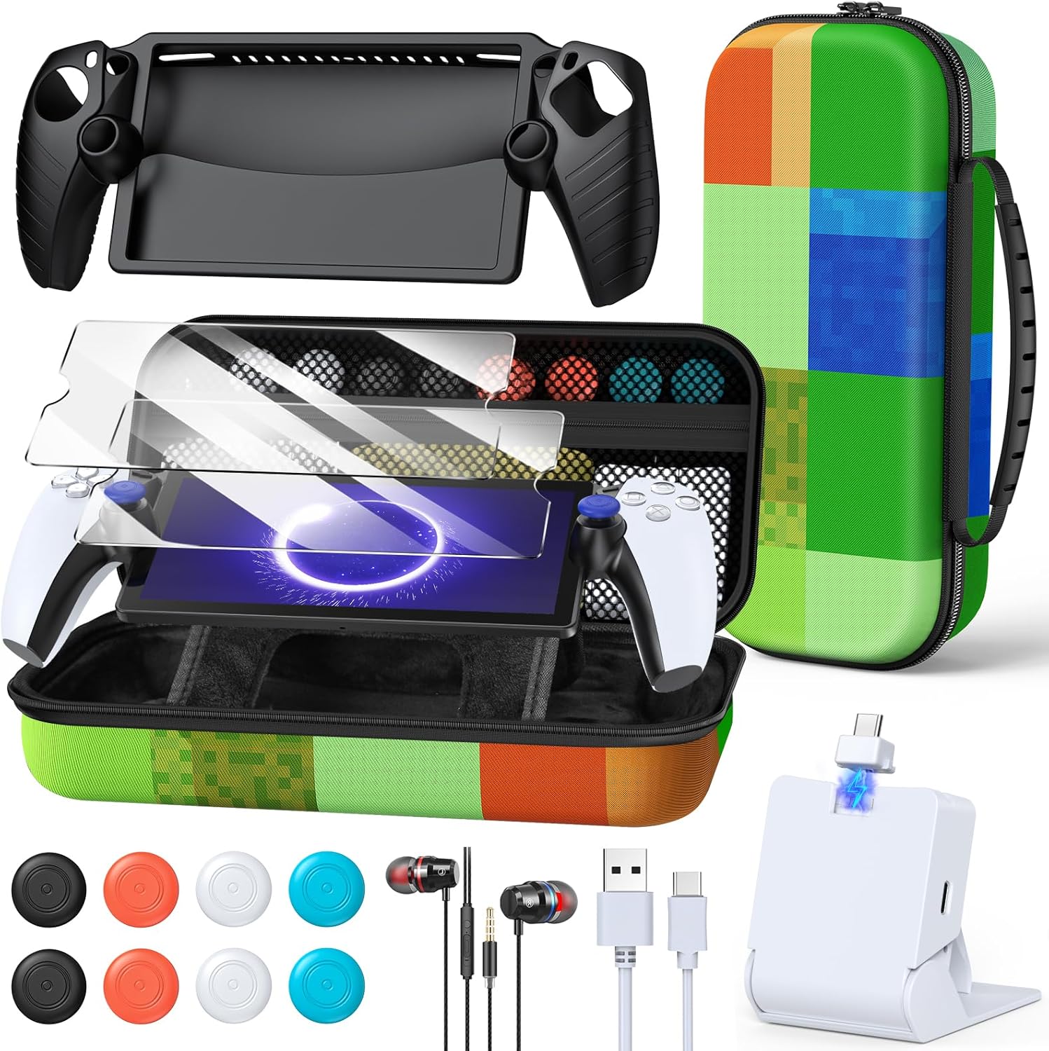 This bundle is worth considering if you want a travel-ready kit for your PlayStation Portal: a carrying case for protection, screen protection you can apply up front, a silicone shell, thumb grip comfort, and a charging dock that’s intended to be simpler thanks to magnetic charging.