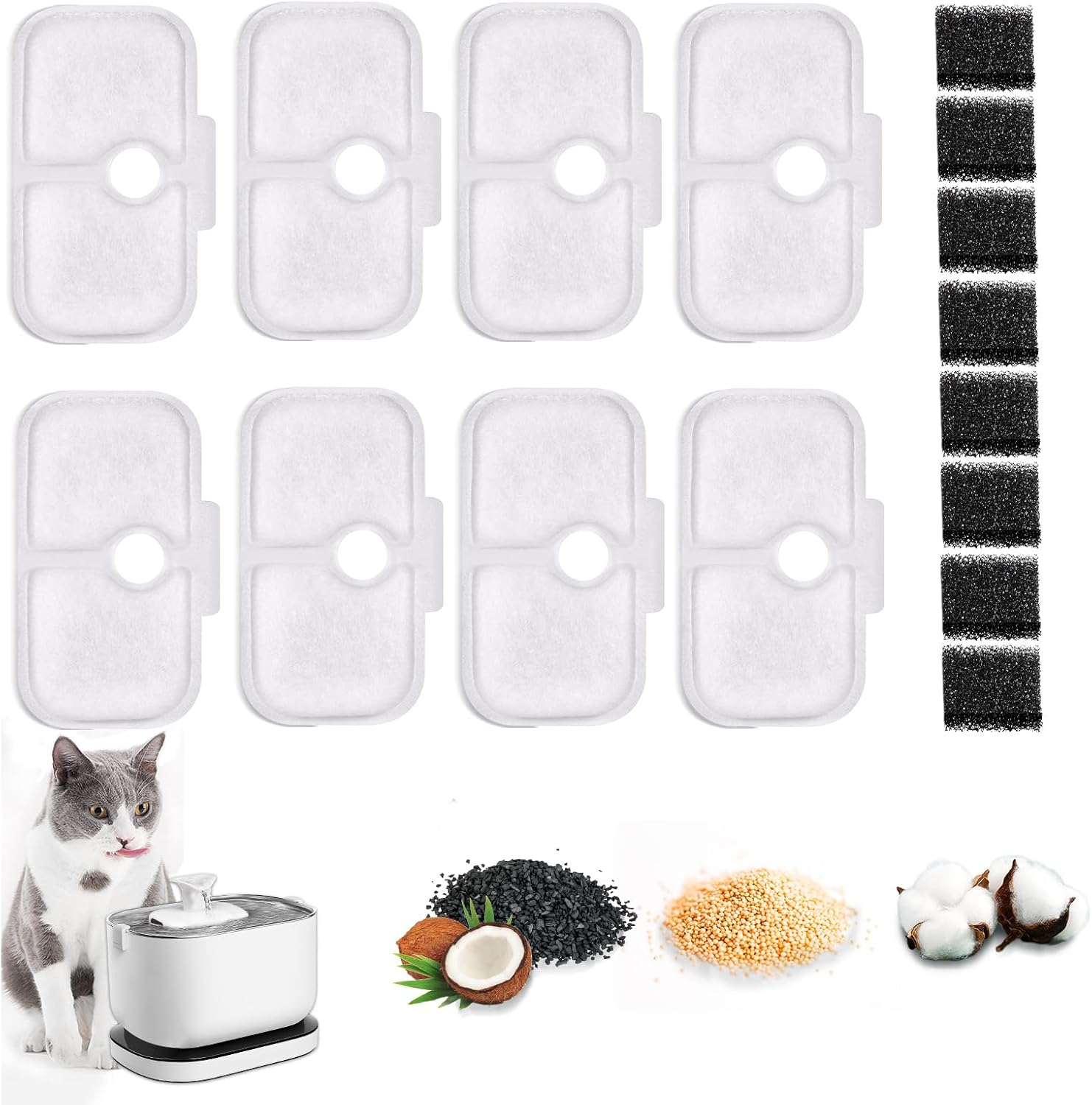 16Pcs cat water fountain filters set with activated carbon & foam (replacement for Petlibro fountains)