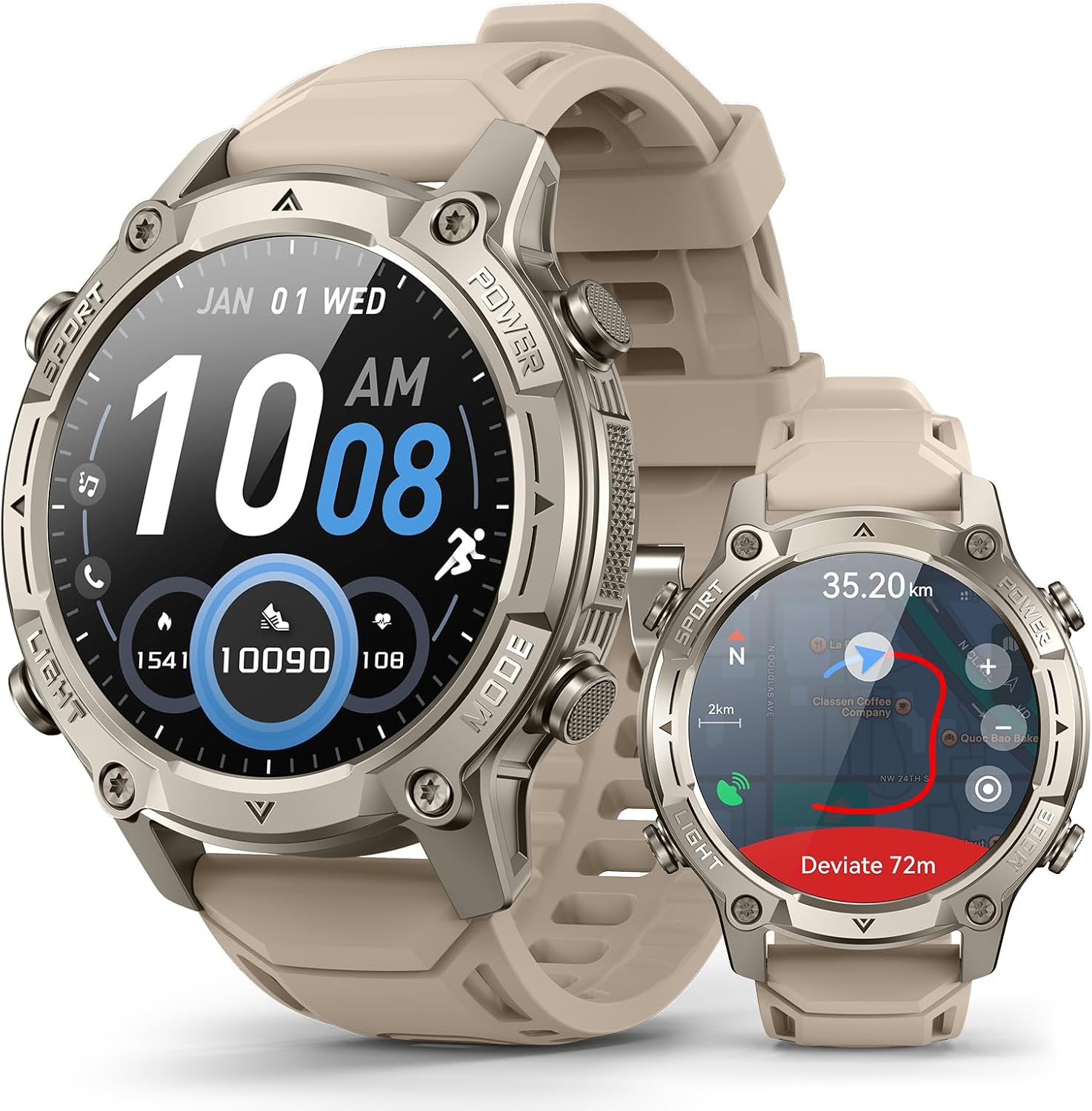 This rugged GPS smart watch combines outdoor navigation, health monitoring and long battery life in a single 1.43 inch AMOLED device for everyday wear and adventure. It is built for users who want offline topographic maps and independent GPS tracking while keeping an eye on heart rate, SpO2 and sleep across long trips.