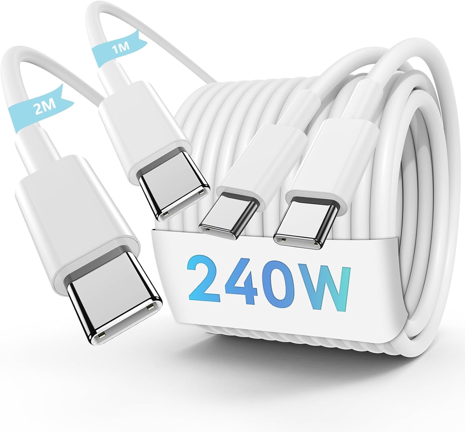 240W USB-C to USB-C Cable (1m + 2m) for fast charging MacBook, iPad and iPhone