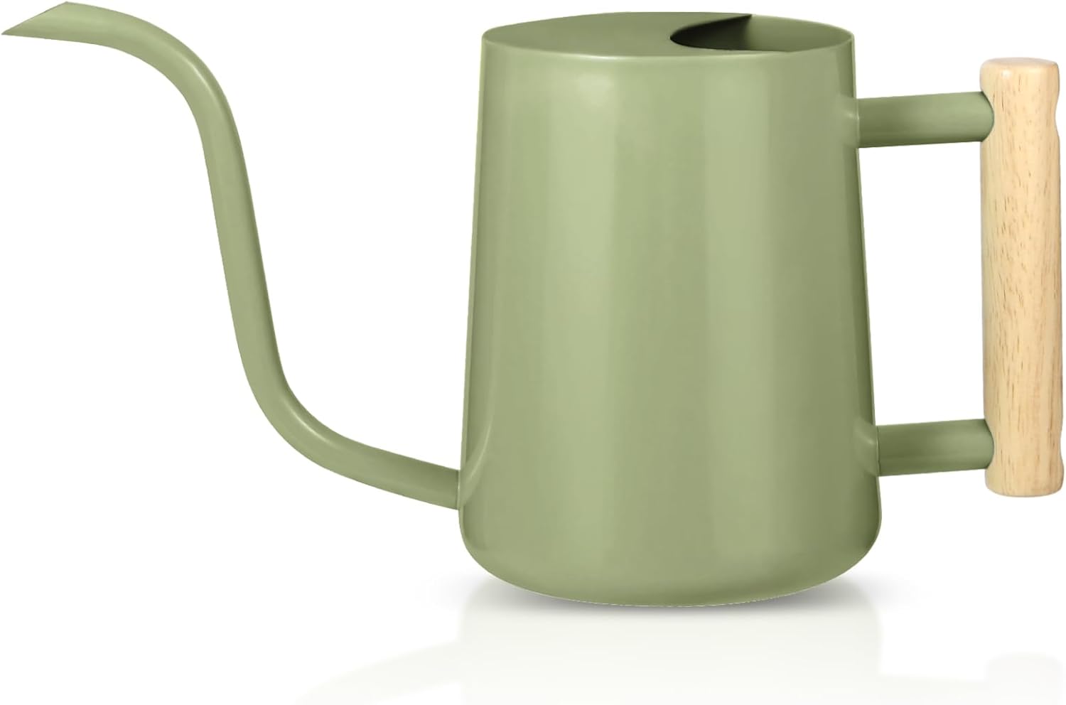 You get one Watering Can Indoor Plants watering can, finished in sage as described, with a stainless steel body and a natural wood handle. The included design features the long spout and the half opening top for quicker filling from the tap. The handle is described as thick and comfortable to hold, with a secure fit at the points where it connects to the body. Tenants and families may appreciate that the can is lightweight enough to be operated comfortably even for children, so long as adult supervision is used for safe handling 🌿.