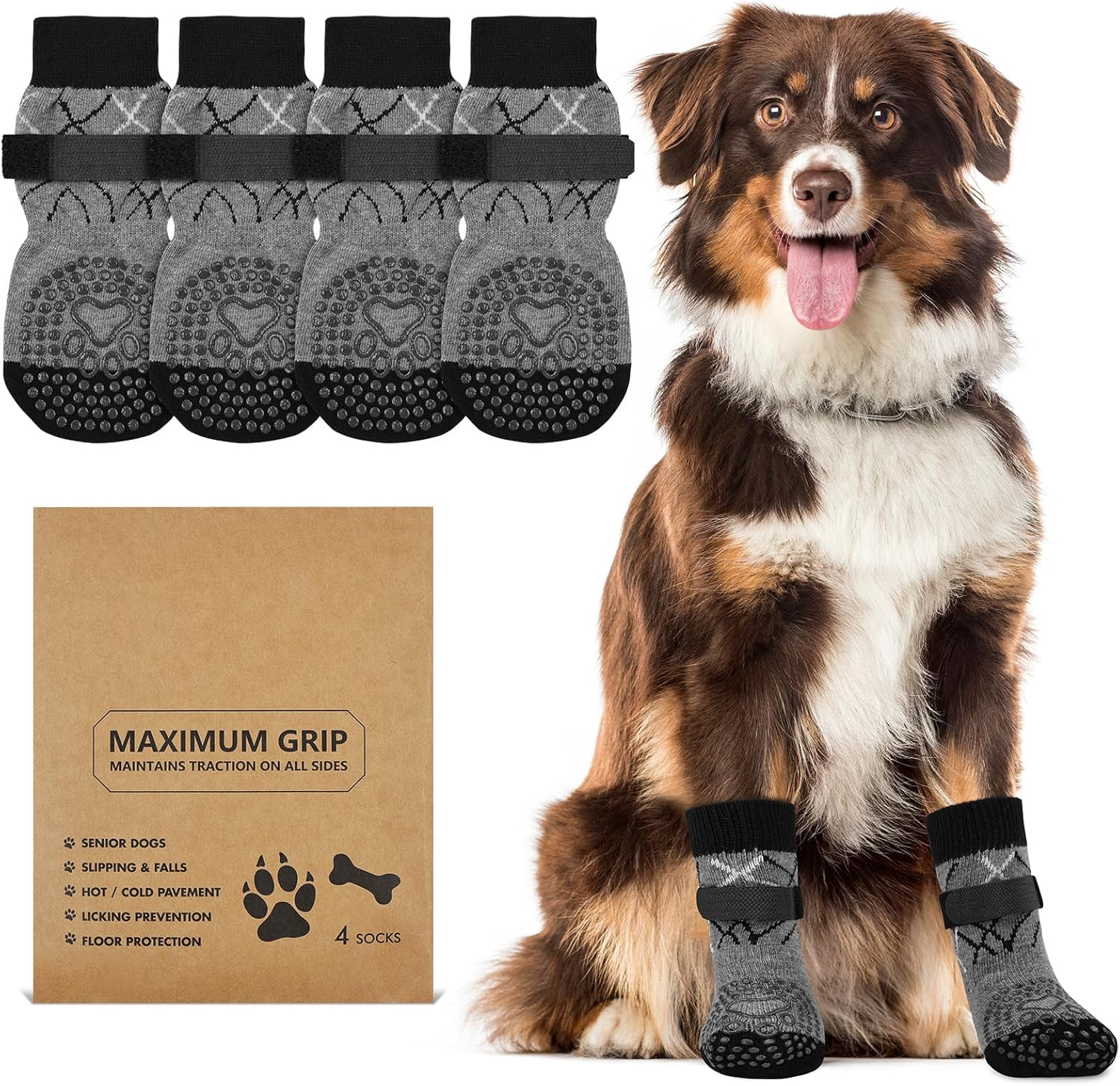 If you’re buying Adiwo 2 Pairs Anti Slip Dog Socks for recovery support, improved traction on slick indoor floors, or reducing scratching impacts on furniture and flooring, they make sense as a practical sock-style solution. The silicone grip design and adjustable Velcro straps are the key parts of the appeal here.