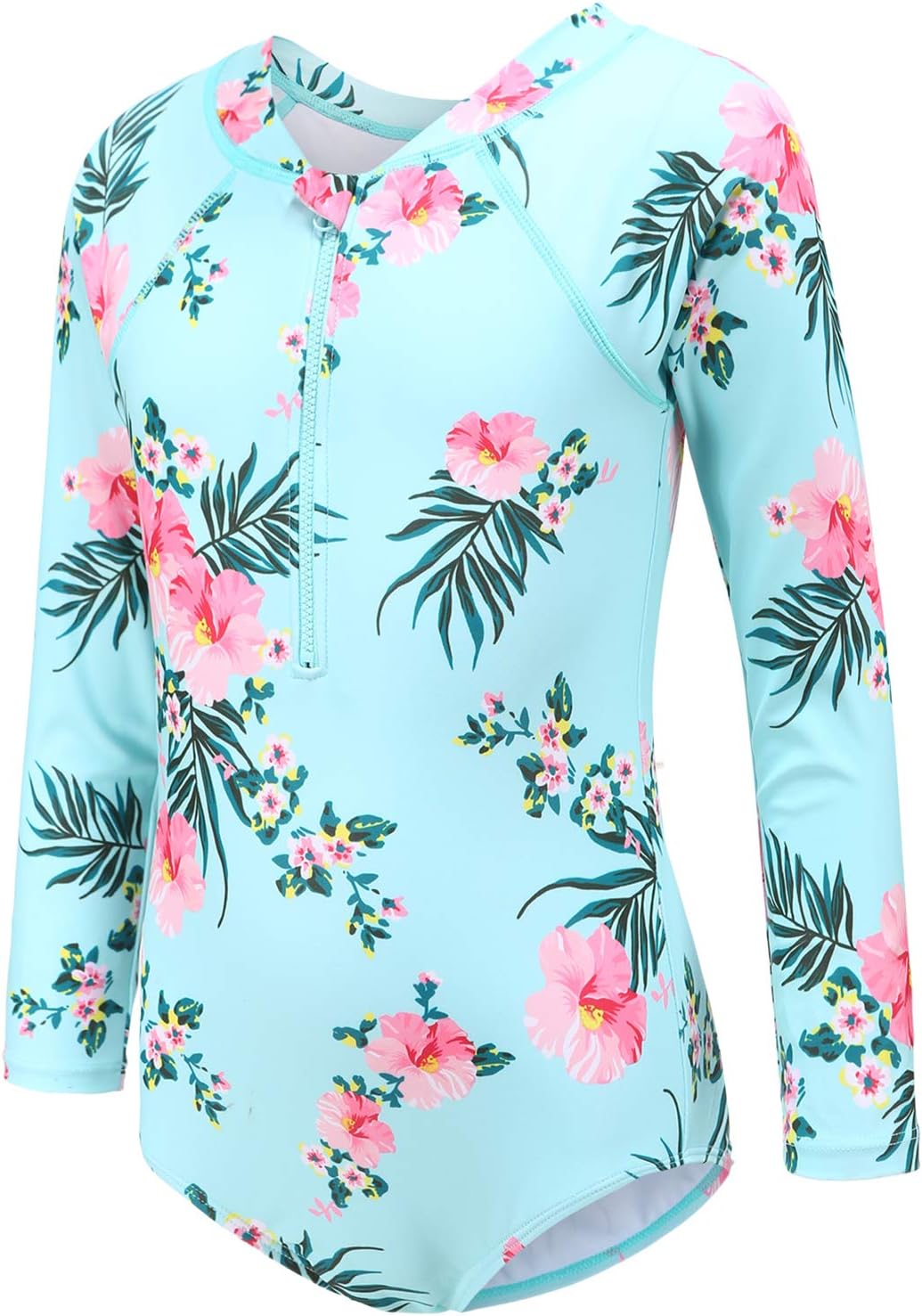 Aisyee Girls Long Sleeve Swimsuit Kids One Piece Beach Rash Vest (Age 5-16)