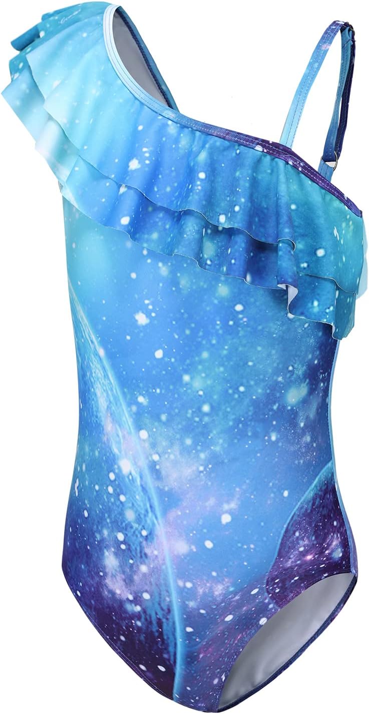 Aisyee Girls One-Shoulder Ruffle Mermaid-Style Swimsuit (3–16 Years)