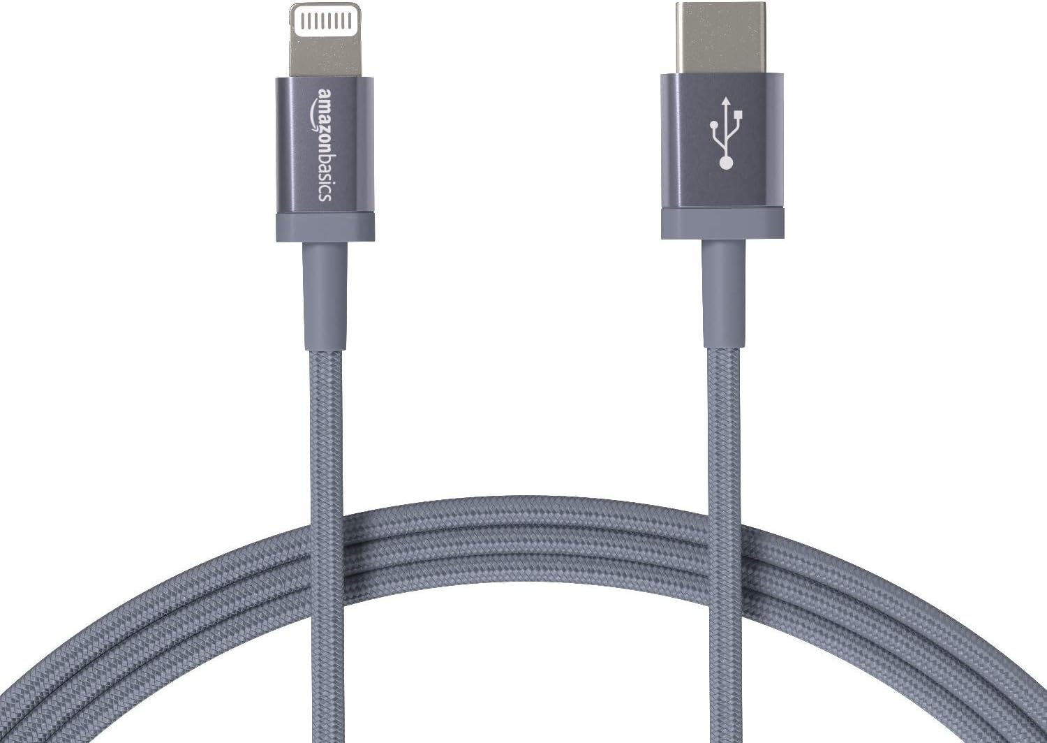 The pack includes one Amazon Basics nylon braided Lightning cable.
