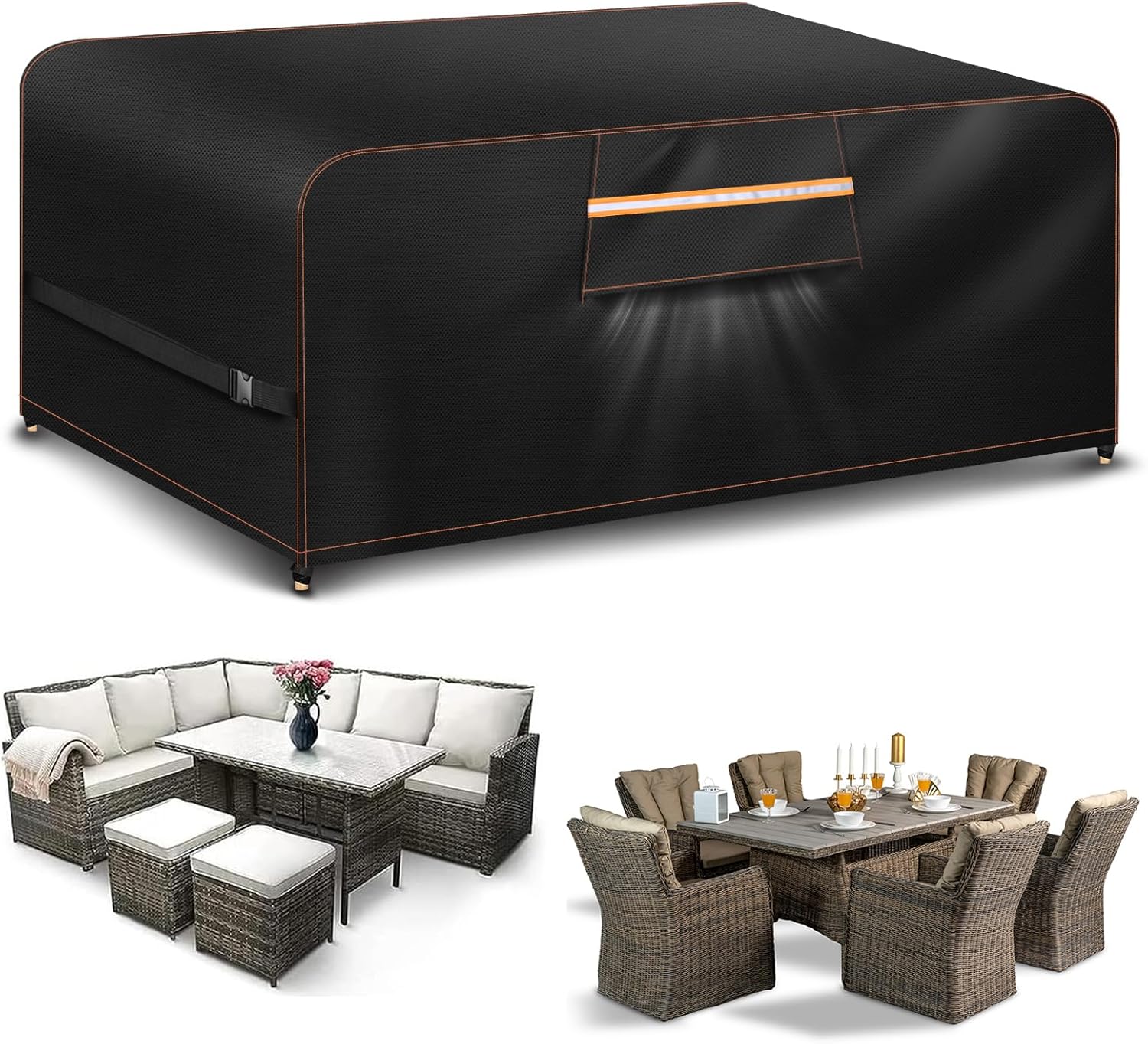 Made from 420D Oxford fabric with a PU waterproof coating, this cover resists tears and fading while blocking rain and snow according to the manufacturer. A waterproof tape finish reinforces seams to reduce water ingress and limit the risk of corrosion or staining of furniture surfaces. The material also helps reduce UV damage, prolonging the usable life of exposed patio pieces.