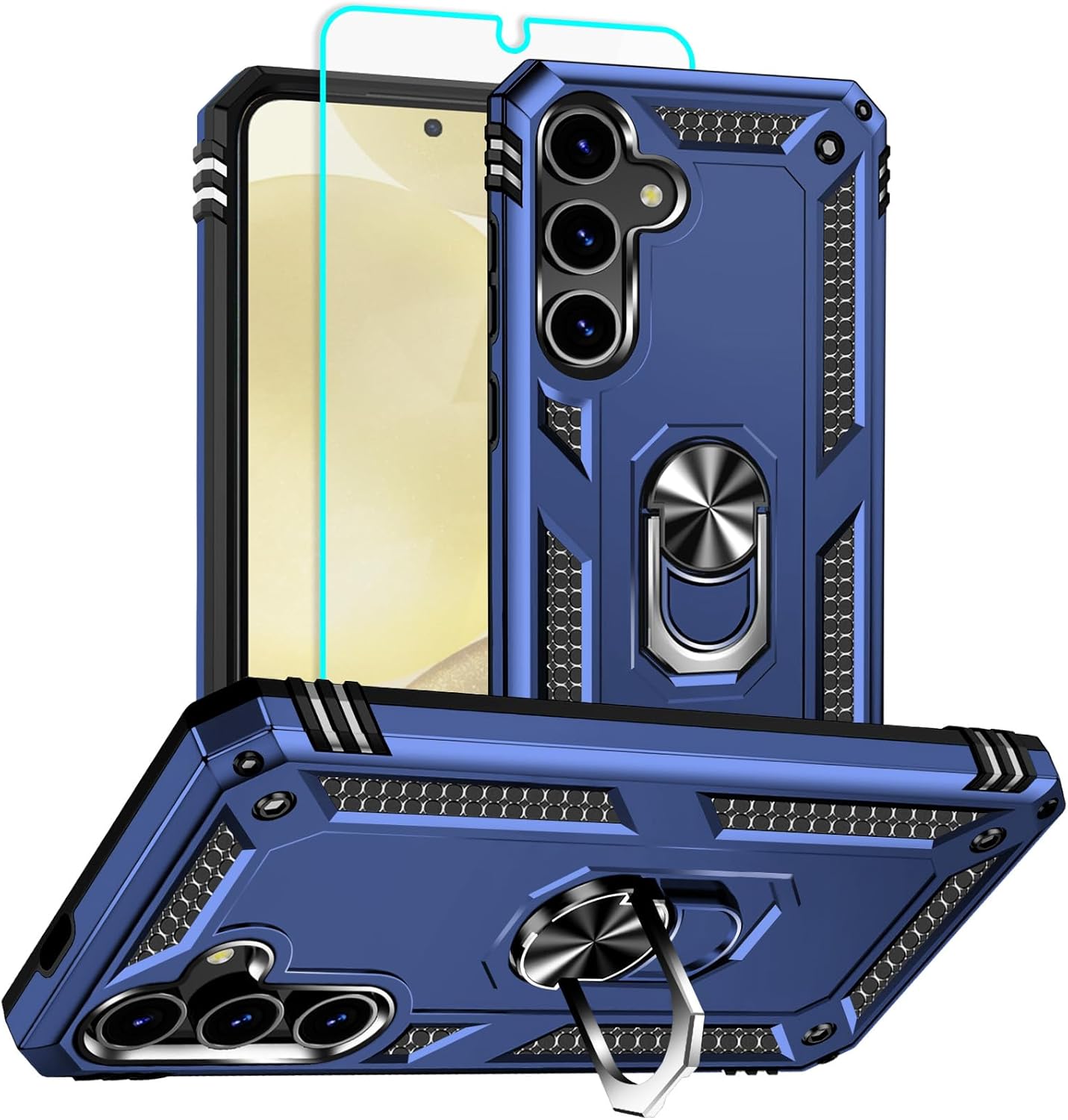 Aozuoton for Samsung Galaxy S24 case with screen protector and 360° rotatable kickstand