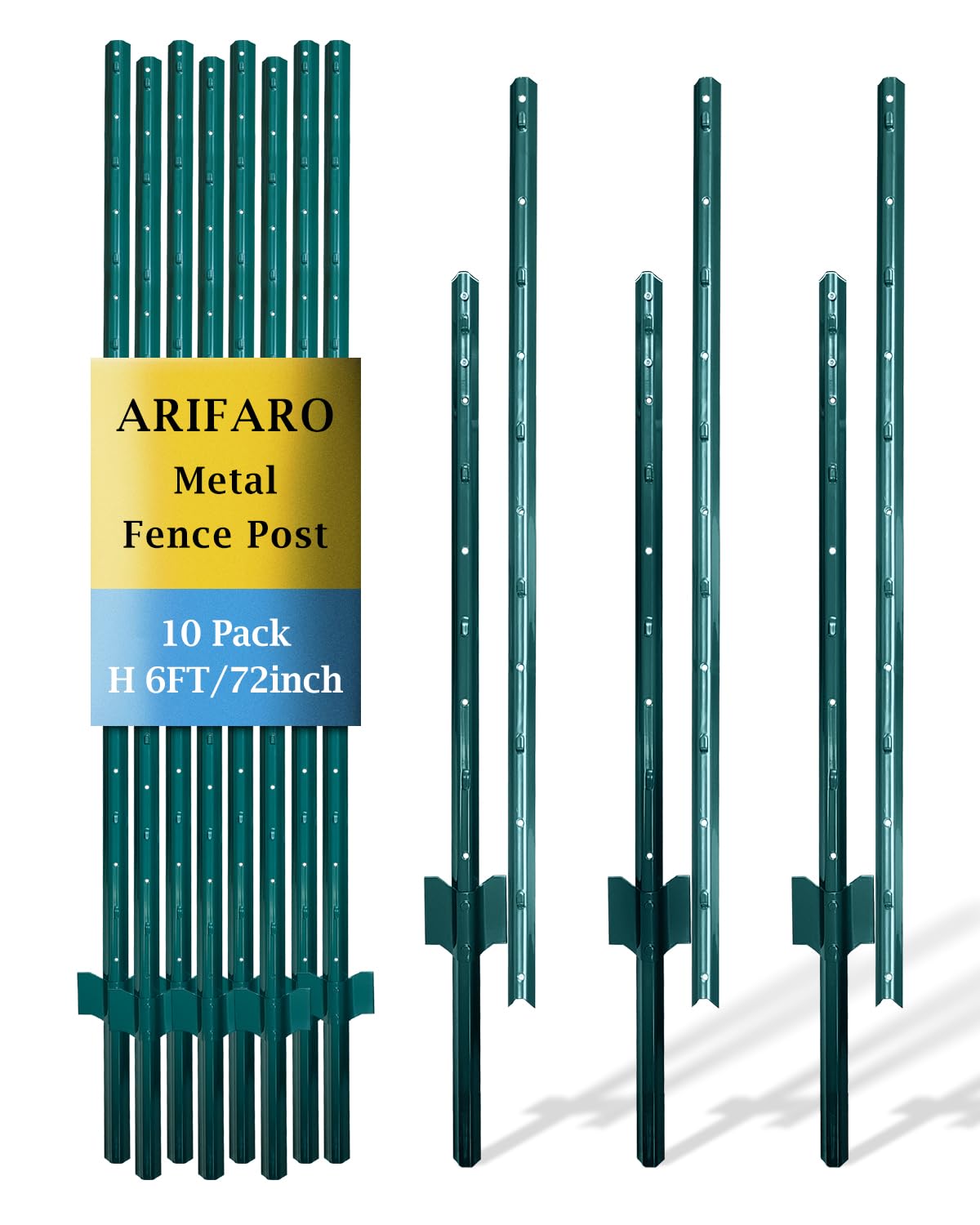 - ARIFARO Metal Fence Posts 215cm / 7ft (Pack of 10) – Assemblable U Posts for Outdoor Wire Fencing