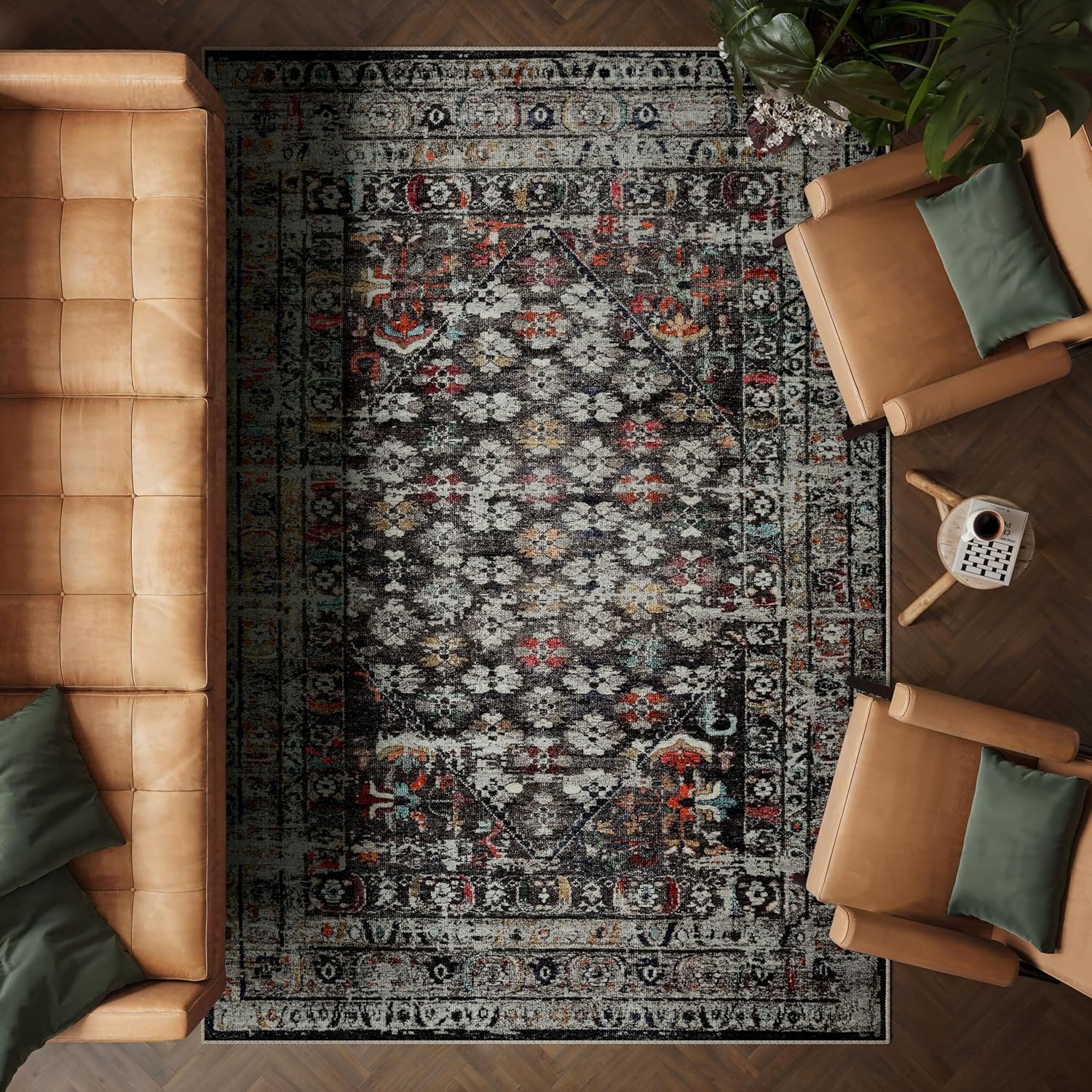- HUGEAR Vintage Brown Low Pile Area Rug (Washable, Non-Slip) 300x400cm