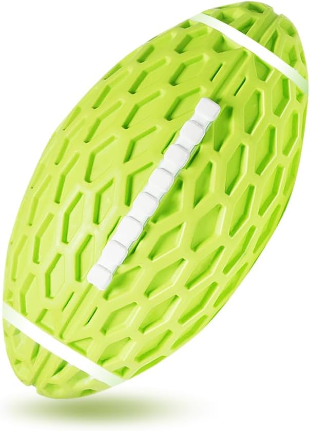 AUSCAT Squeaky Dog Ball for Aggressive Chewers (Tough Rubber Rugby Ball) – Green, Large, 5.5 in / 14 cm