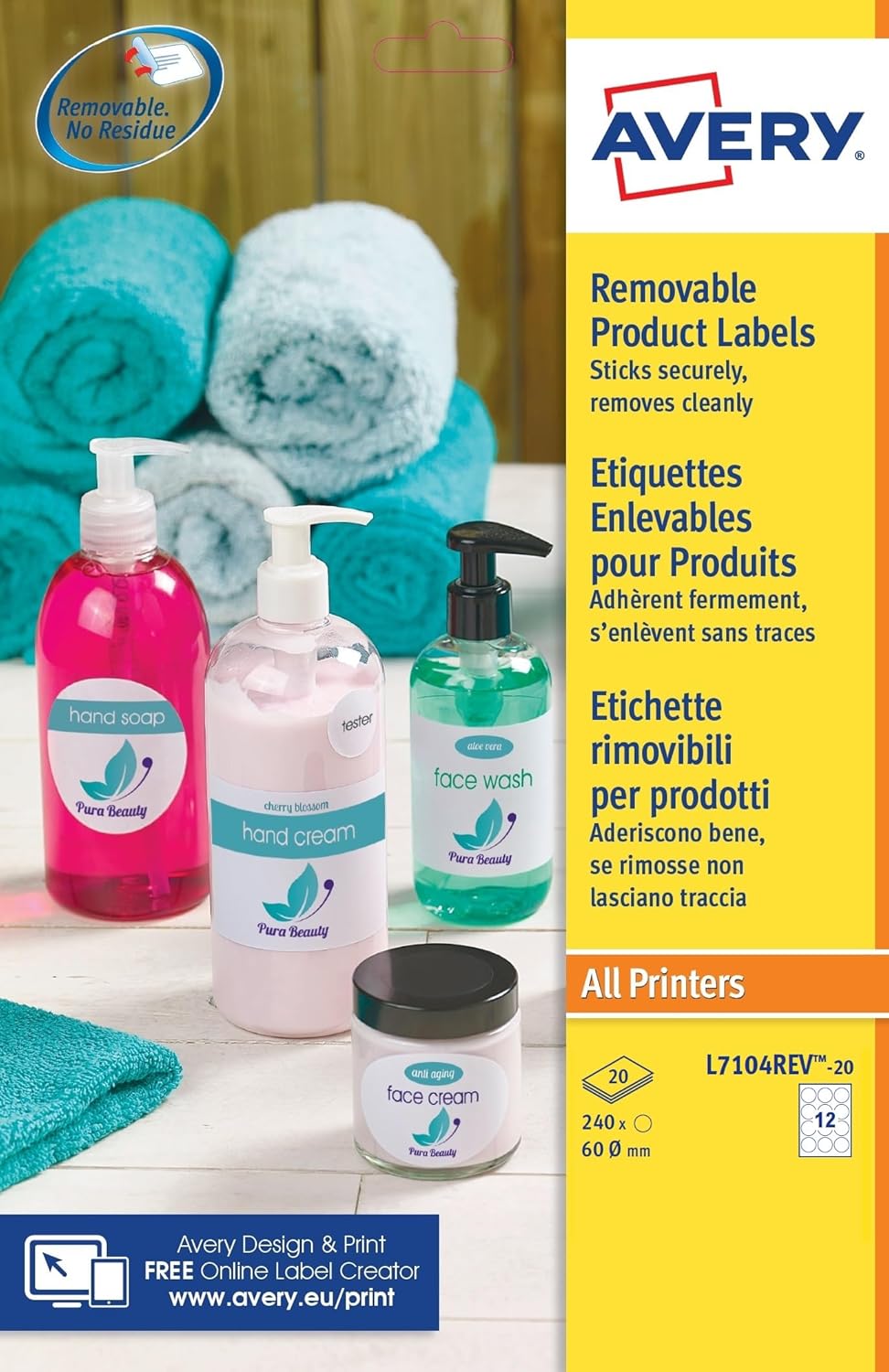Avery L7104REV-20 Printable removable round labels (60mm) – Customisable A4 sheet