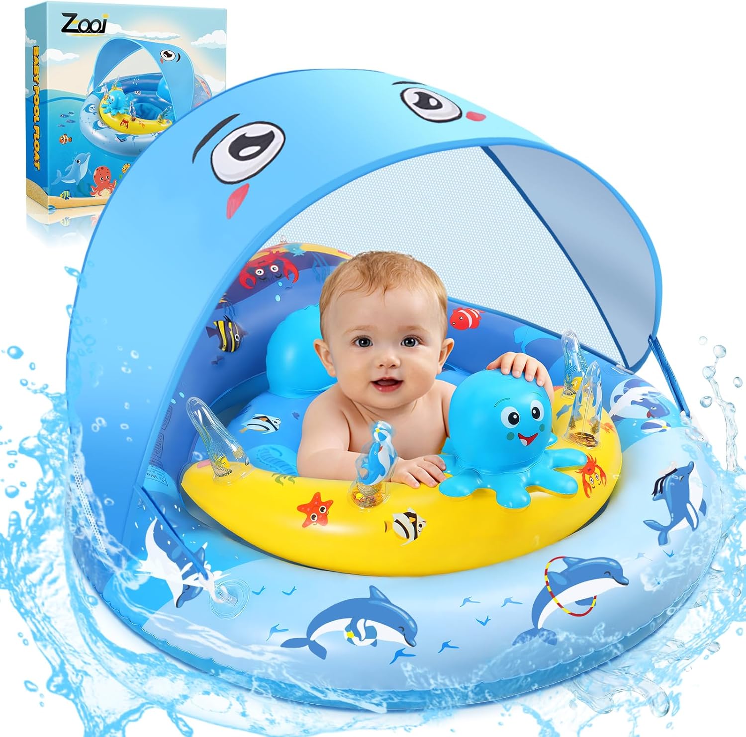 Baby Swimming Float with Canopy (UPF 50+) – Sea Animal Toys, Inflatable Seat for 6–36 Months