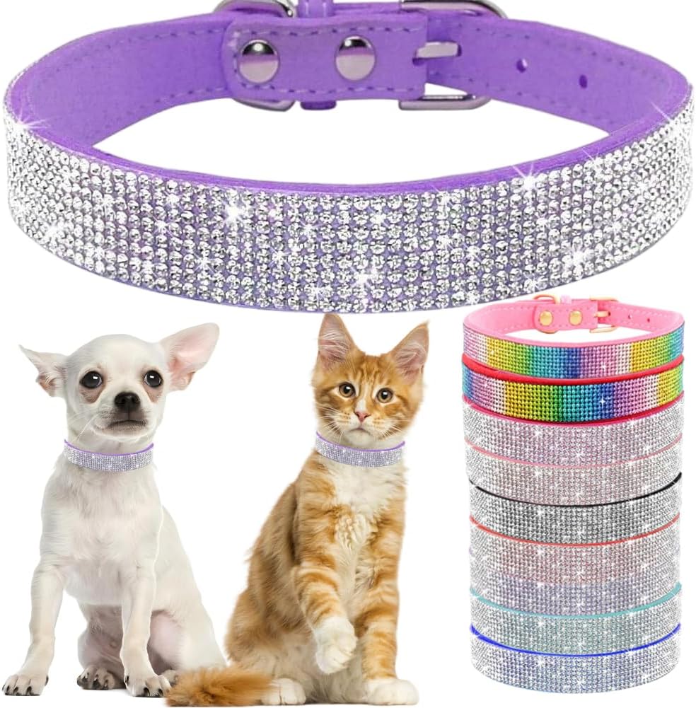 What you’ll likely like: - The rhinestone diamond studded look with a bowknot detail, aimed at making a small pet look “sparkly” in photos and events. - Soft velvet leather and a padded interior designed to reduce rubbing and irritation. - Adjustable fit via five metal eyelets.