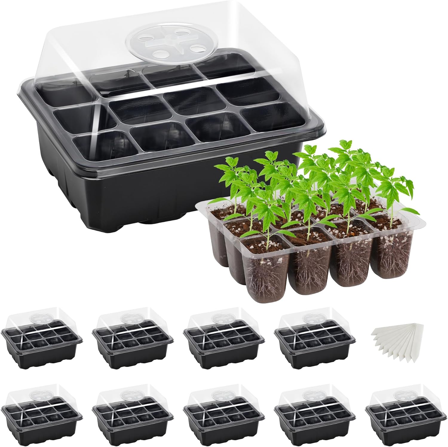 Bonviee 10-pack seed starter trays kit with adjustable humidity domes (12 cells per tray)