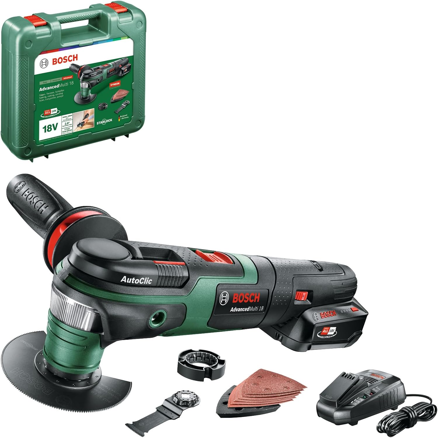 - Bosch Home and Garden AdvancedMulti 18 Multi Tool (18V System) with Universal Accessory Set, in SystemBox (Amazon Edition)
