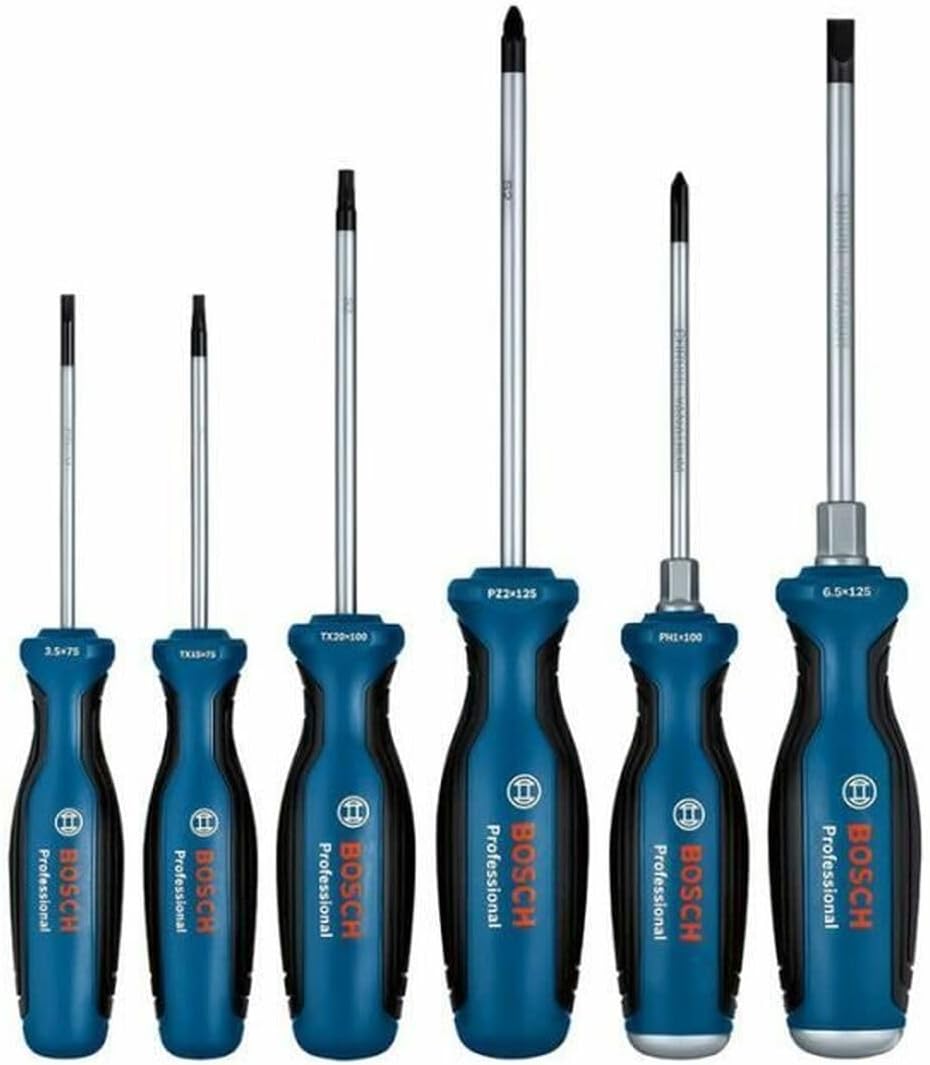 Bosch Professional 6-piece Screwdriver Set (SL/PH/PZ/TX) with soft-grip shafts and precision tips