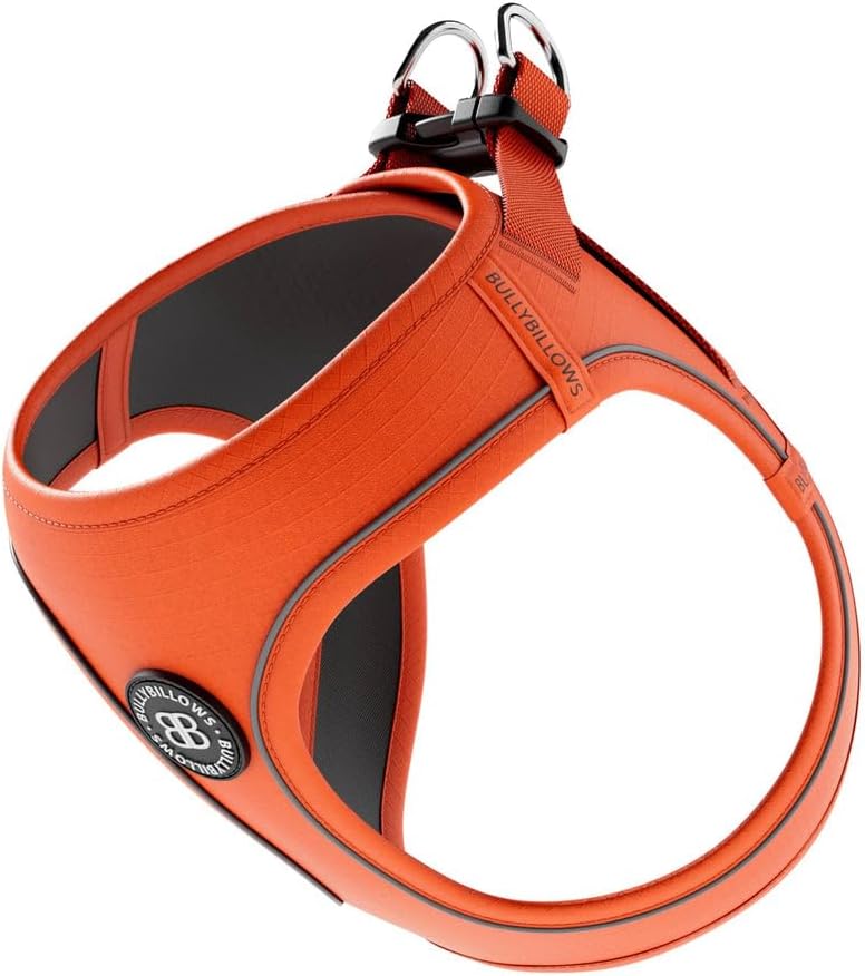 Tech summary (from the product details provided): - Name: BullyBillows Step-In Dog Harness With Handle - Type: Dog harness with handle - Size: XX Small (small breed/puppy harness) - Breed fit (as stated): Designed for small breeds such as Pomeranians - Key comfort feature: Padded lining - Key visibility feature: Highly reflective materials - Colour: Orange - Included concept: Step-in design for easier fitting