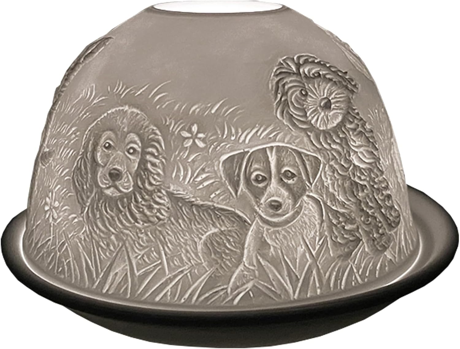 Cello Porcelain Tealight Holder Dome with 3D Projection – Puppies Dog Lovers Design