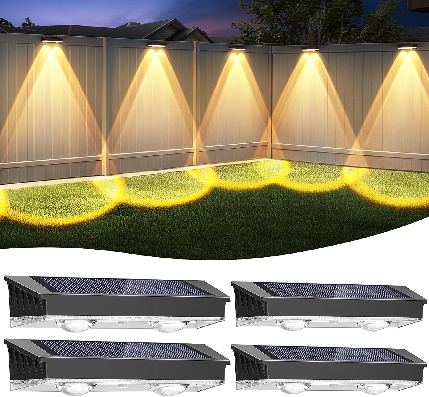 - IIRARA Solar Fence Lights 4-Pack for Garden Outdoor