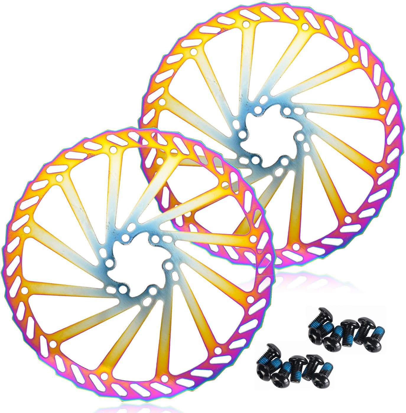 If you’re shopping for replacement disc brake rotors, the CNCLOL options in 160mm, 180mm and 203mm are basically a straightforward stainless-steel upgrade: they’re made for rim-to-disc braking with a rotor designed to handle regular riding without you worrying too much about corrosion. The set comes as two rotors, includes 12 screws, and you can pick a colour finish (blue, gold or rainbow) to match the look of your bike.